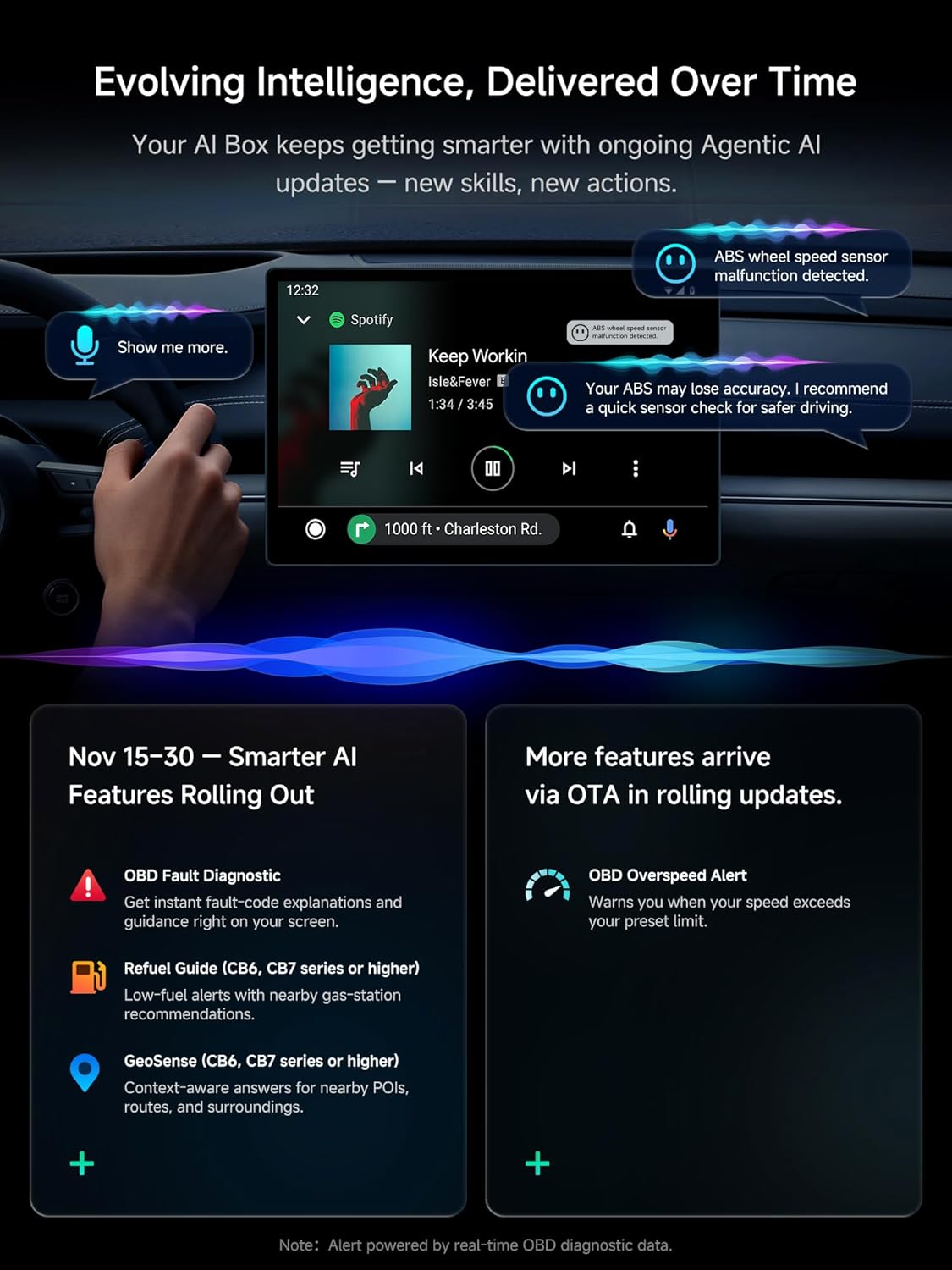 Smart IoT Connectivity for Personalized Comfort:The CB4B connects BLE lights, LED displays, and select accessories—turning it into a fully interactive Magic Box CarPlay cockpit through MYATOTO’s IoT interface. Optional diagnostic pairing adds real-time car data for empowered driving—letting your vehicle feel uniquely tuned to your personality and style.