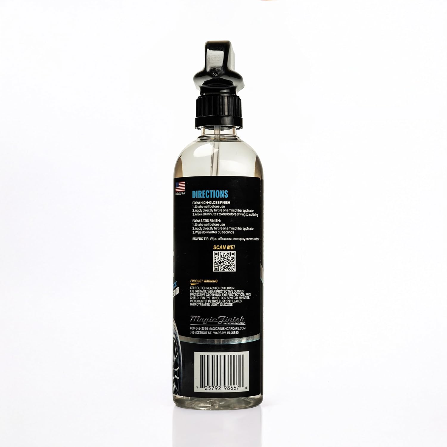 Bold Wet Look That Lasts: Get that slick, high-gloss shine your tires deserve; Magic Finish Tire Shine is silicone-based for a deep, wet finish that holds up to weather and washing, ideal for pro detailers or anyone who wants a showroom-ready look