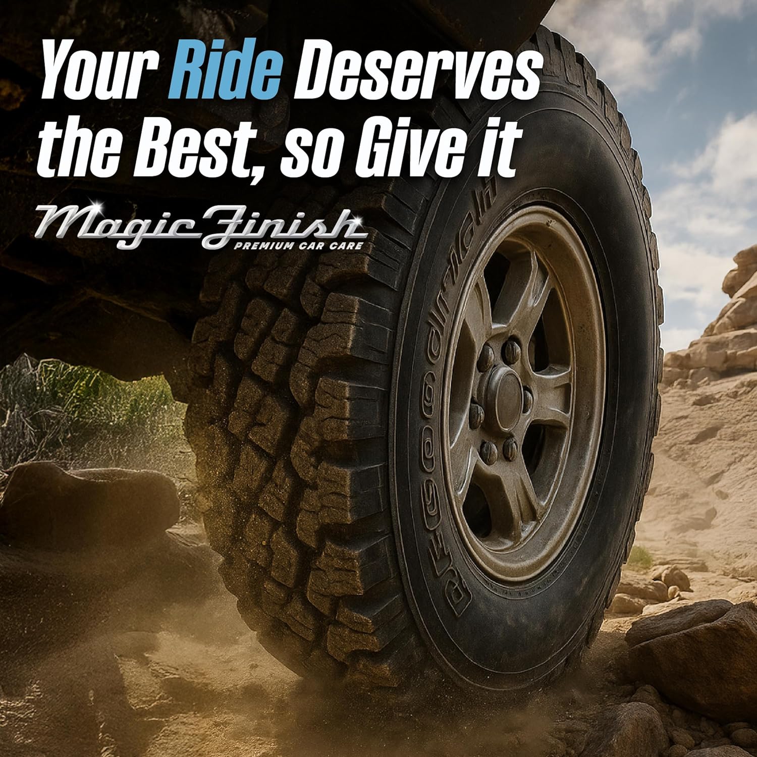 Magic Finish Tire Shine (16 fl oz) – Silicone-Based Tire Dressing for Long-Lasting Wet Look – High-Gloss Car Cleaning Supplies for Pro Detailing Results