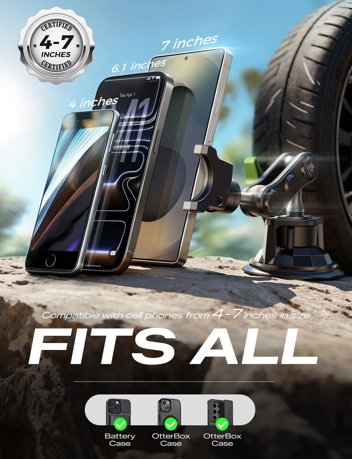 [Broad Compatibility] MAGIC JHON phone car mount is upgraded with rubber-coated grips for enhanced stability and protection. Thanks to its specialized grips that expand up to 4″ wide, this phone holder car is compatible with most 4-7 inches smartphones.