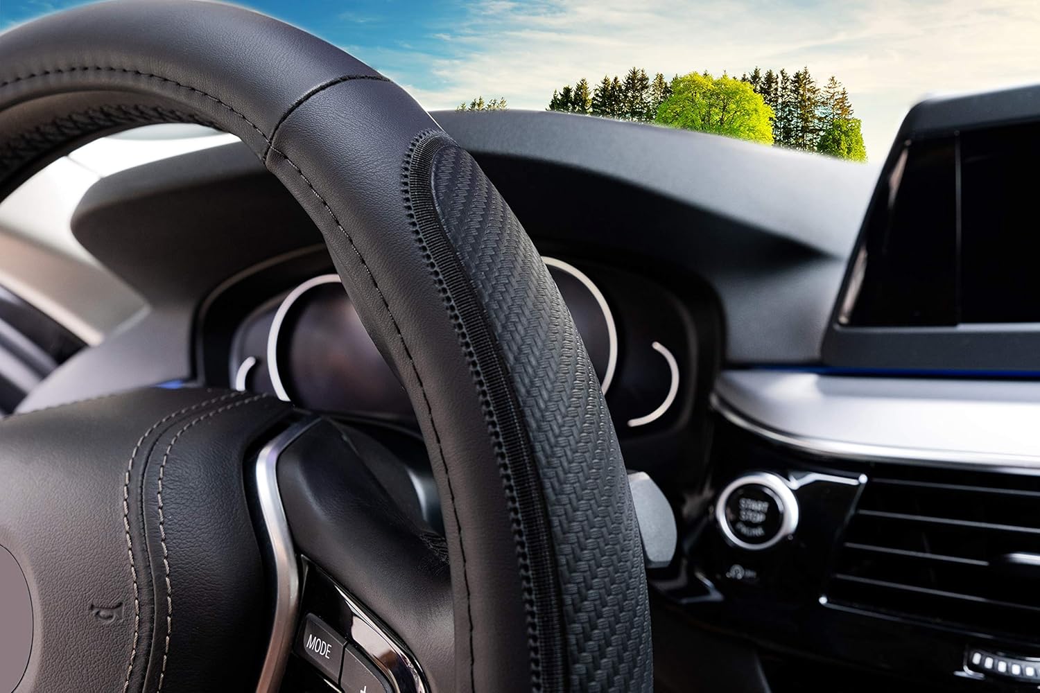 Really happy with this steering wheel cover. The microfiber leather feels soft but still gives a solid grip, making driving more comfortable, especially on longer trips. It also helps keep the wheel from getting too hot or cold depending on the weather.Installation took a little effort to stretch on, but once in place it fits snug and doesn’t slide around at all. The black design looks clean and blends perfectly with the interior.Good quality, comfortable to use, and a nice upgrade for the price. Definitely recommend.
