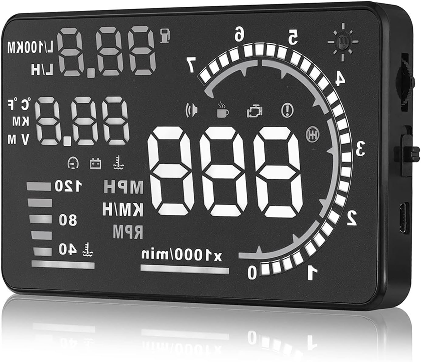 This is a smart display to help you read a variety of vehicle driving data without lowering your head, and you can see the data projected on the windshield. The HUD has rich contents to display, such as speed, engine speed, water temperature, battery voltage, instantaneous fuel consumption, mileage measurement, and so on. And these data are displayed on a multi-color 5.5” screen and finally projected to the screen. With the fitment of automatic adaptation car models, the HOD can apply for cars in line with OBD II or EUOBD, which is easy to install. Such convenient high-tech equipment! Would you like to bring one home?