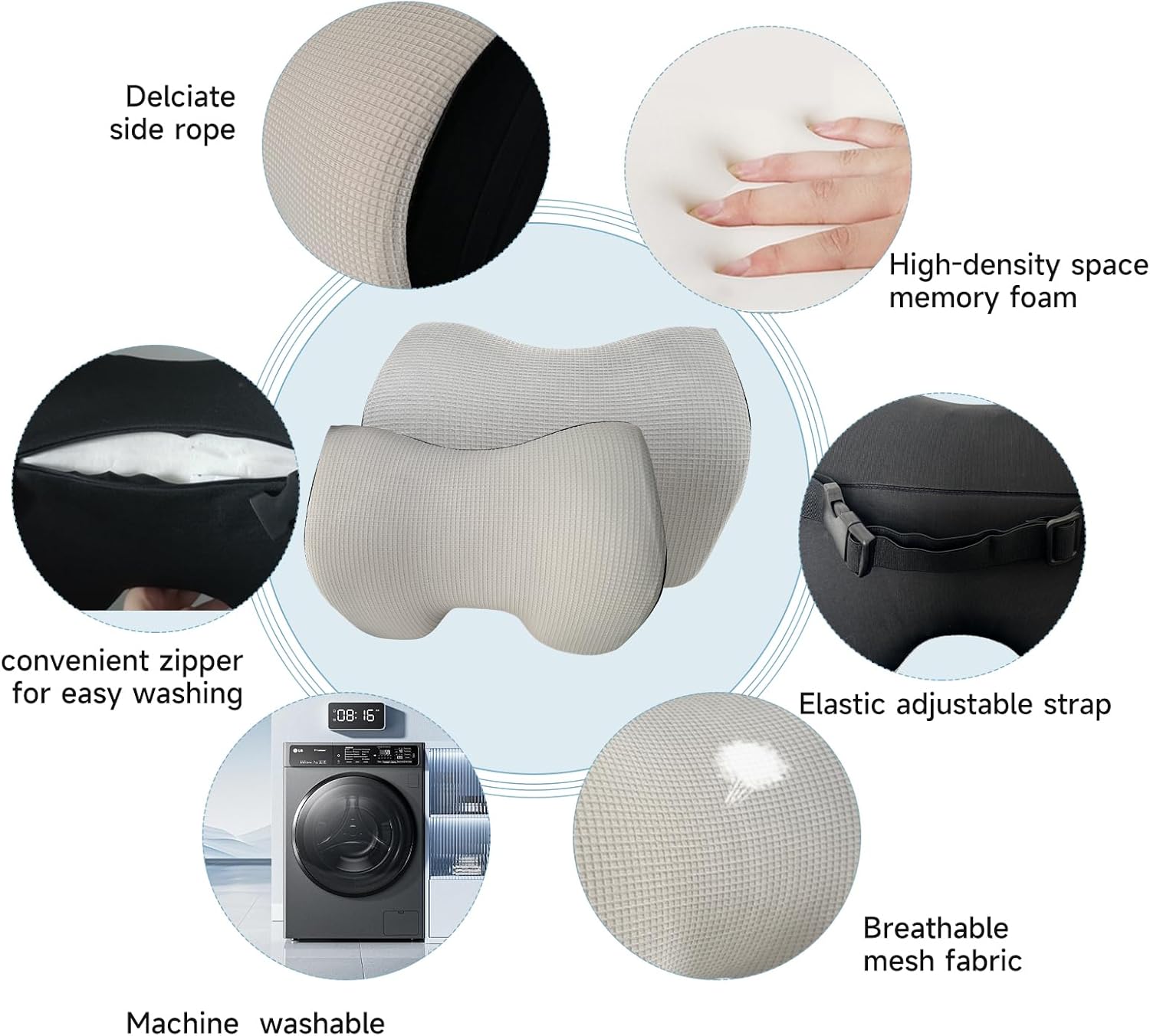100% SPACE MEMORY FOAM – Our car headrest pillow are made of high-quality space memory foam, which is soft and comfortable. Car seat neck pillow provide good support for your cervical spine and head, help you maintain a correct driving posture, make your driving safer, reduce neck pain and comfort your neck.