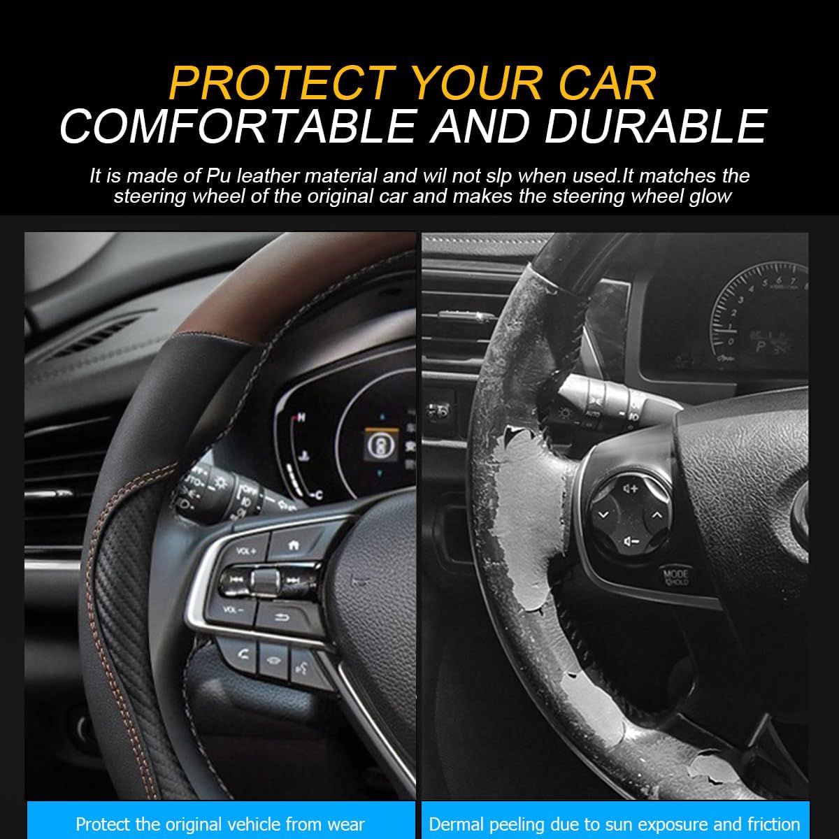 -Protection: The product can protect the steering wheel, effectively prevent scratches, fading and wear, and is not easy to slip, so that your driving is safer.
