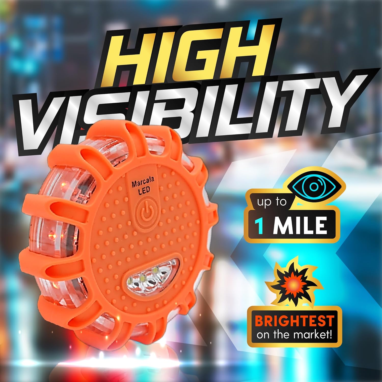 Very bright, good selection of alternating patterns to use. Nice instruction sheet included with helpful tips on proper placement. I plan to carry one in my daypack for extra peace of mind when hiking in the fickle weather of the Pacific Northwest. They only weigh 6oz each with batteries. I’ll order more for all my other vehicles as soon as they become available again. My only suggestion to Marcala would be to have 4 in a set instead of 3. Seems like a better ratio to distribute near your vehicle.Shout out to Liana at Marcala’s customer service for her quick response and alternate plan should my box be lost forever in the postal purgatory. Fortunately the box eventually showed up. Huge appreciation to the postal workers who keep showing up to work in the worst conditions and push those boxes from one side of the country to the other.I spent time shopping the various vendors who sell these type of lights. After sifting through fake reviews as well as those written by the chronically miserable who would complain that water is too wet, I chose to purchase from Marcala based on the selection of product and overall positive feedback. I leave it to you as a consumer to choose who to order from. I happened to have a great experience with Marcala considering the current climate of poor customer service everywhere.And now I will give a review of the reviewers…To anyone who is in EMS, or on a road crew, or is a professional driver: Please go easy on the harsh reviews. These LED lights are not designed for daily deployment and abuse that your professions see on a regular basis. I don’t know if they would be a great addition to your industrial level gear or are capable of enduring the rigors of First Responders jobs. But to be dismissive and relegate them to a “junk” category does a disservice to the everyday person that these were designed for. We need to encourage people to adopt basic and easy to use tools to have in their vehicle while they wait for help to arrive.The K.I.S.S. principle applies to these products (Keep It Simple, Stupid).LED pucks are targeted for a broad audience. Example: Your sweet little grandma or grandpa or your teenager with limited driving experience. Who wants their elderly parents or teenager standing on the side of the road under cold windy or rainy conditions struggling to light a 30-minute flare after having a tire blow out? Most roadside services/tow trucks take a lot longer than 30 minutes to reach them. Meanwhile, the 3 flares that were set in place have long been extinguished before the tow truck arrives. The LED lights offer an added measure of safety. If these lights are the only item carried or part of a network of traditional flares and triangles, SOMETHING in the vehicle is BETTER THAN NOTHING! A safety item can only be useful if a person is comfortable using it.Lots of chatter and questions from reviewers about lumens and brightness. LED technology, like all technology, improves exponentially every year both in lumen output and price point. Are these as bright as a hot flare? Probably not. Nor does an apple taste like an orange either. Don’t get hung up on lumens. I can attest that these are very bright and should do well in alerting other drivers to avoid your disabled vehicle or draw attention to SAR if lost in the woods or desert or mountain peak.My advice to potential buyers: Buy now and buy the new and improved later on. Buy them for all your vehicles and family. They’re affordable enough to do so. Keep extra batteries. Remember, nothing is built to last 20 years or even 5 years for that matter. And stop expecting these to be seen from the Space Station when it orbits overhead.Safe travels,DW