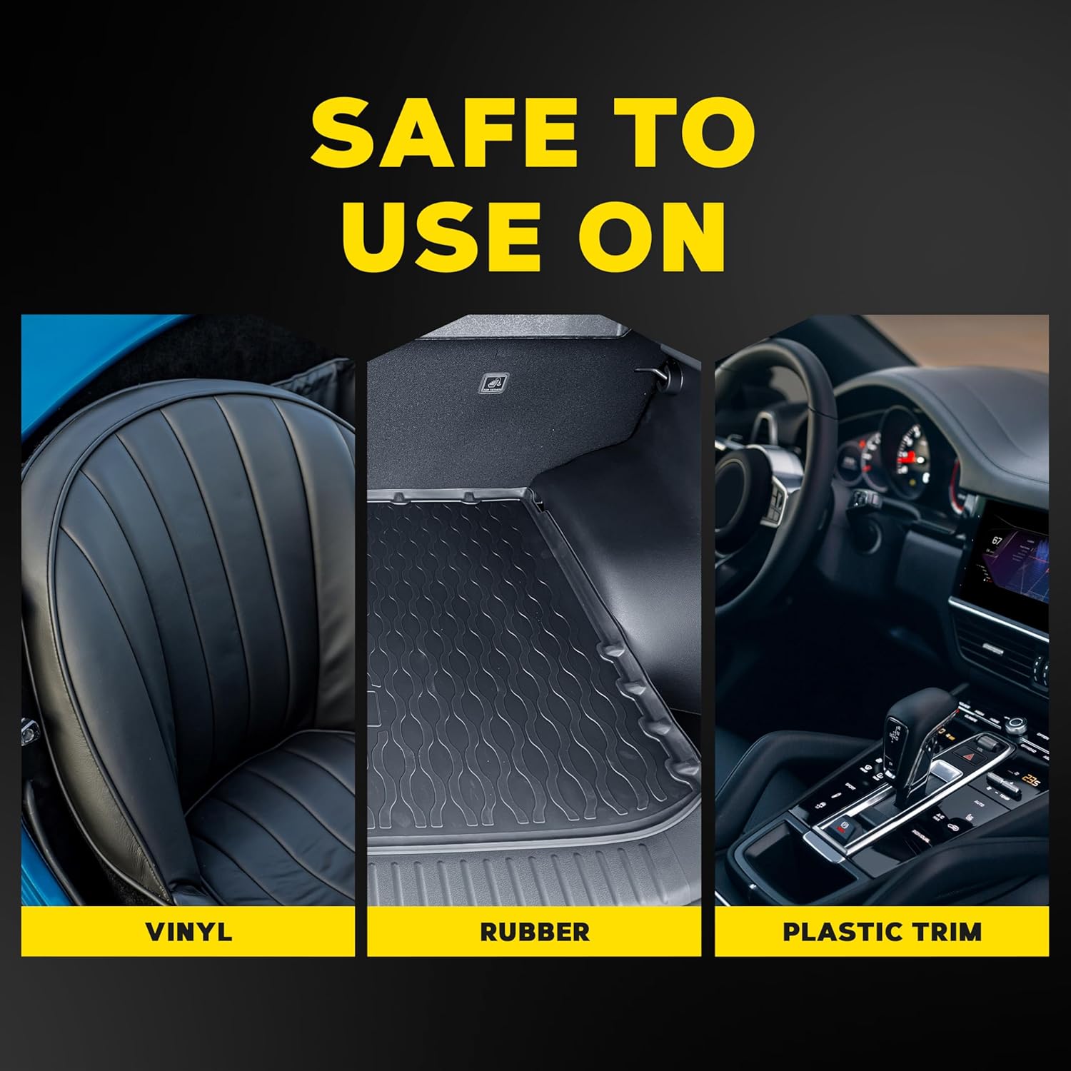 INTERIOR AND EXTERIOR: Shield and shine your ride inside and out with an all-in-one spray that is safe and effective. Great for use on interior and exterior vinyl, rubber, and plastics. No need to worry about fading or damage.