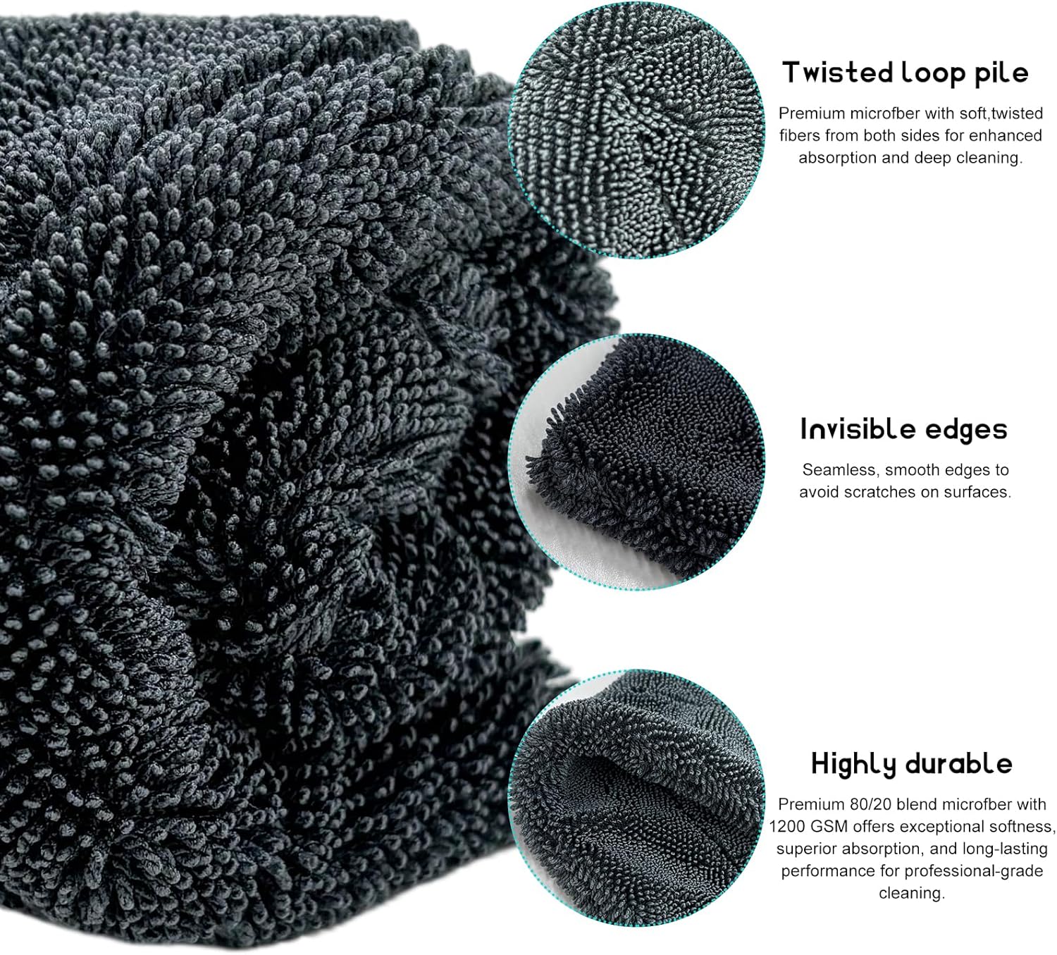 【Exceptional Absorbent】: With a 1200 GSM (grams per square meter) rating, these thick cleaning towels excel in absorbency, which can quickly soak up water for efficient drying. The high absorbency not only speeds up your cleaning process but also aids in avoiding water spots.