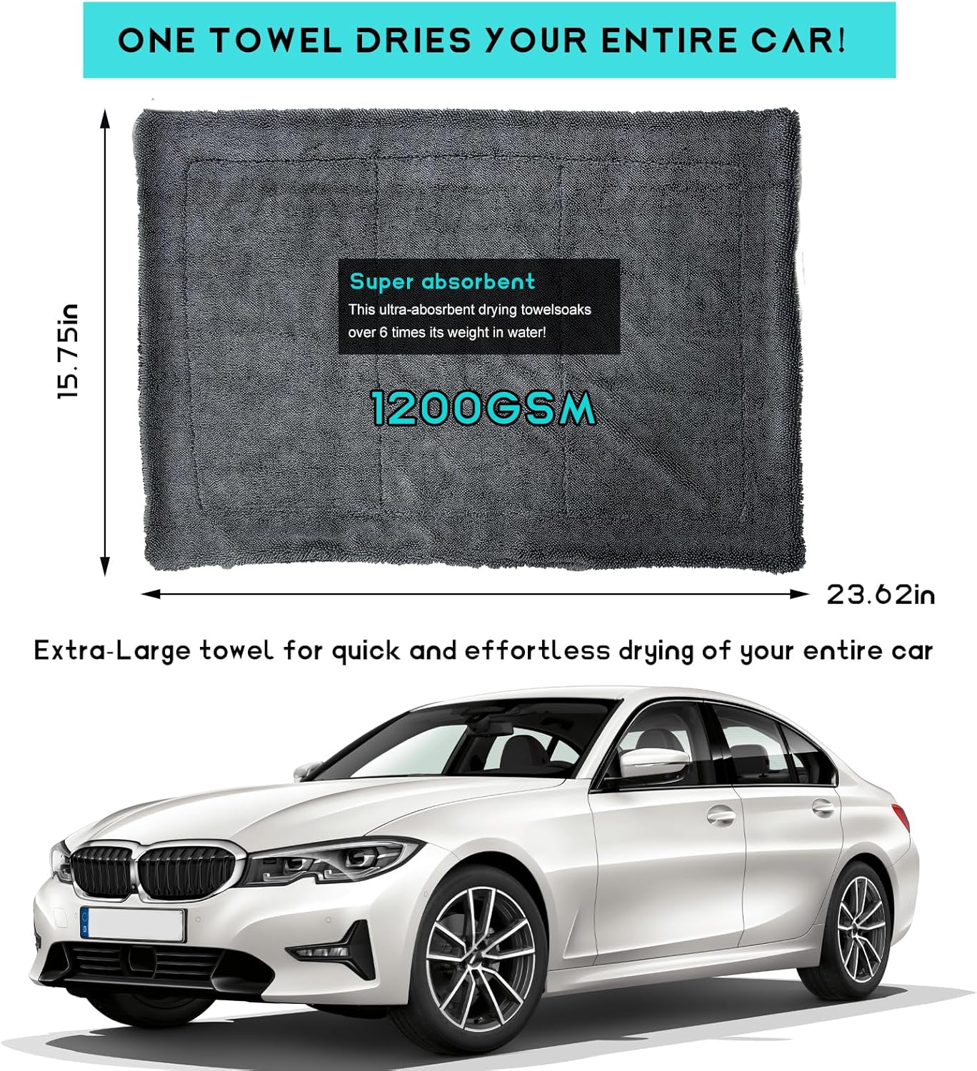 This towel works great! Dried entire car without wringing towel. It’s lightweight and super absorbing. Very happy with this purchase.