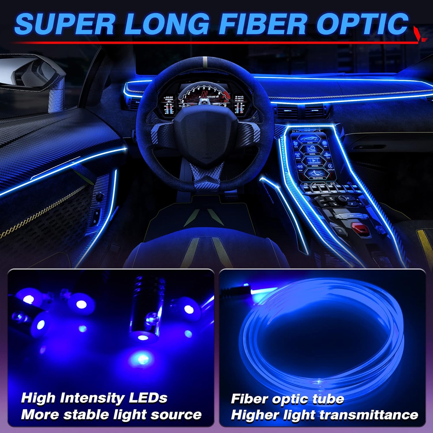 ★【2025 Upgraded Version, 8 in 1 and 400 inch Design】This interior car light contains 8 LEDs and 400 inches of fiber optic tube. More LEDs and longer fibers than other 5-in-1s, which can be flexibly installed in any car