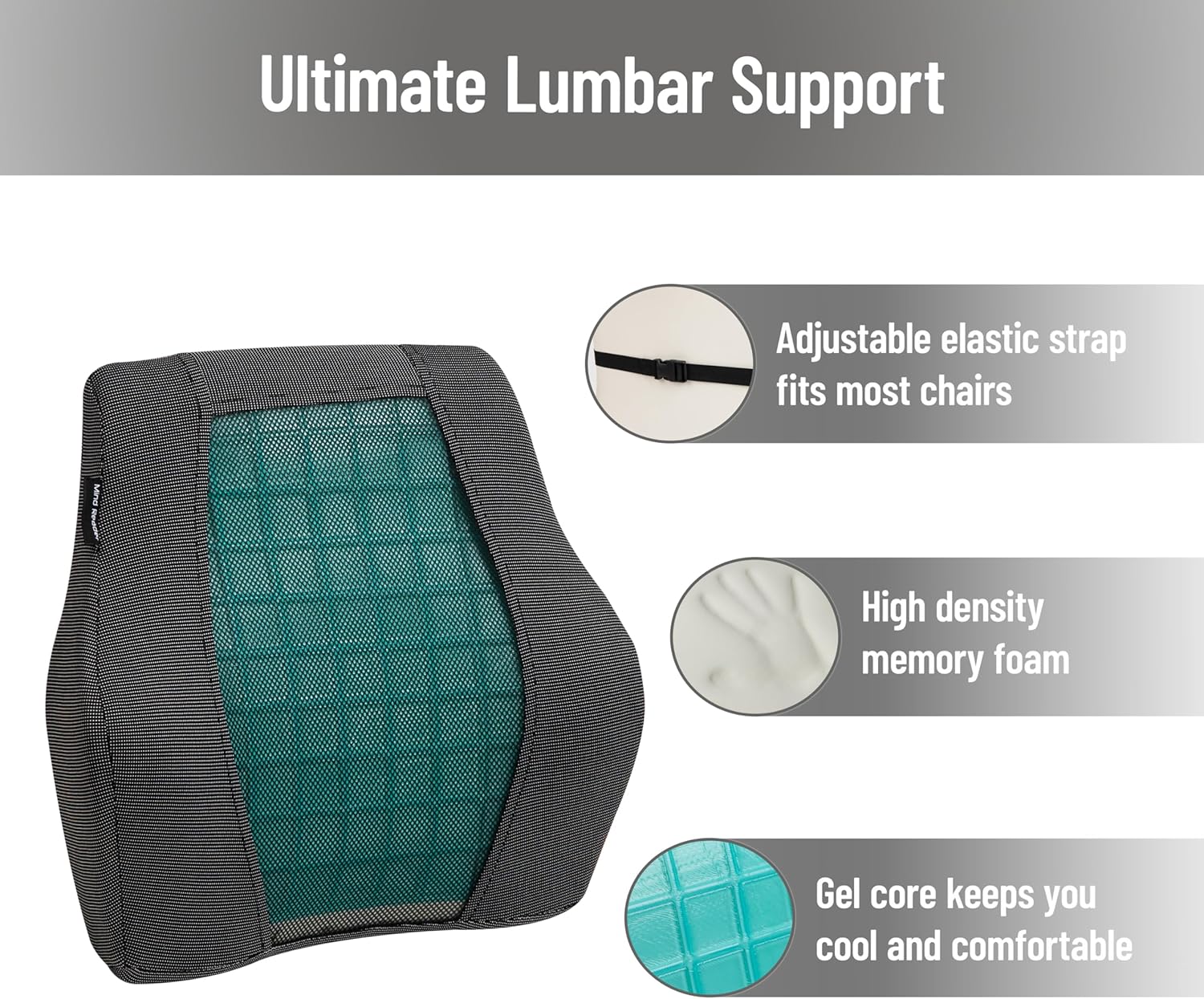 Air-Cloud Lumbar Cushion: Recommended by chiropractors, this memory foam cushion supports posture and helps relieve lower back pain