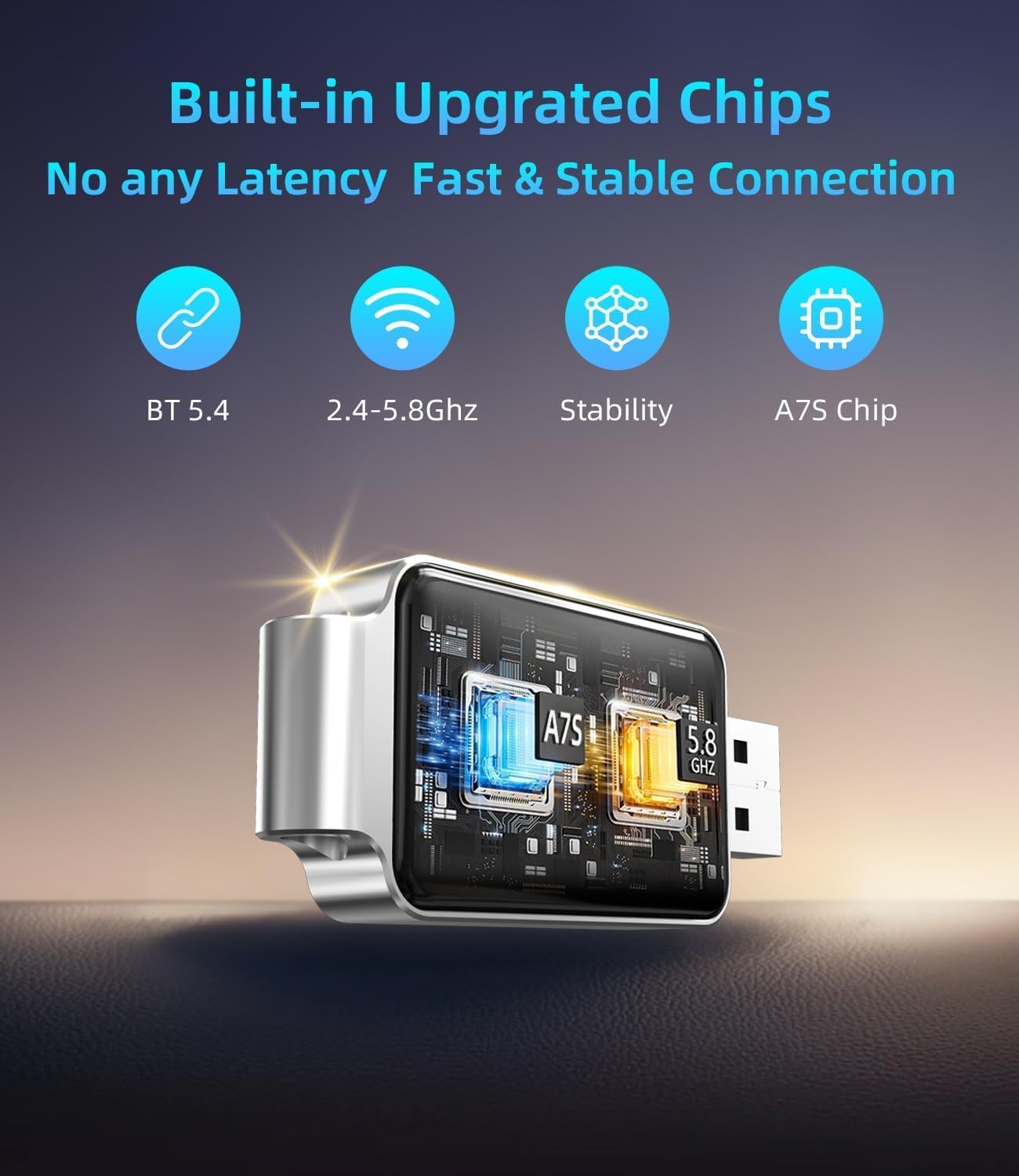 【Revolutionary Dual-Mode Connection & Superior Stability & Zero Clutter】This Car Play adapter adopts an upgraded 2025 intelligent A7S chip with industry-leading Bluetooth 5.4 and dual-band WiFi 6 (intelligently switching between 2.4G/5G signal channels to thoroughly resolve disconnections/latency issues of traditional wireless carplay), powered by a next-generation chip for 3x faster data transfer than standard adapters, delivering powerful performance, rapid response, and stable wireless connectivity while minimizing interruptions and delays. It maintains your vehicle’s original high-fidelity audio quality.