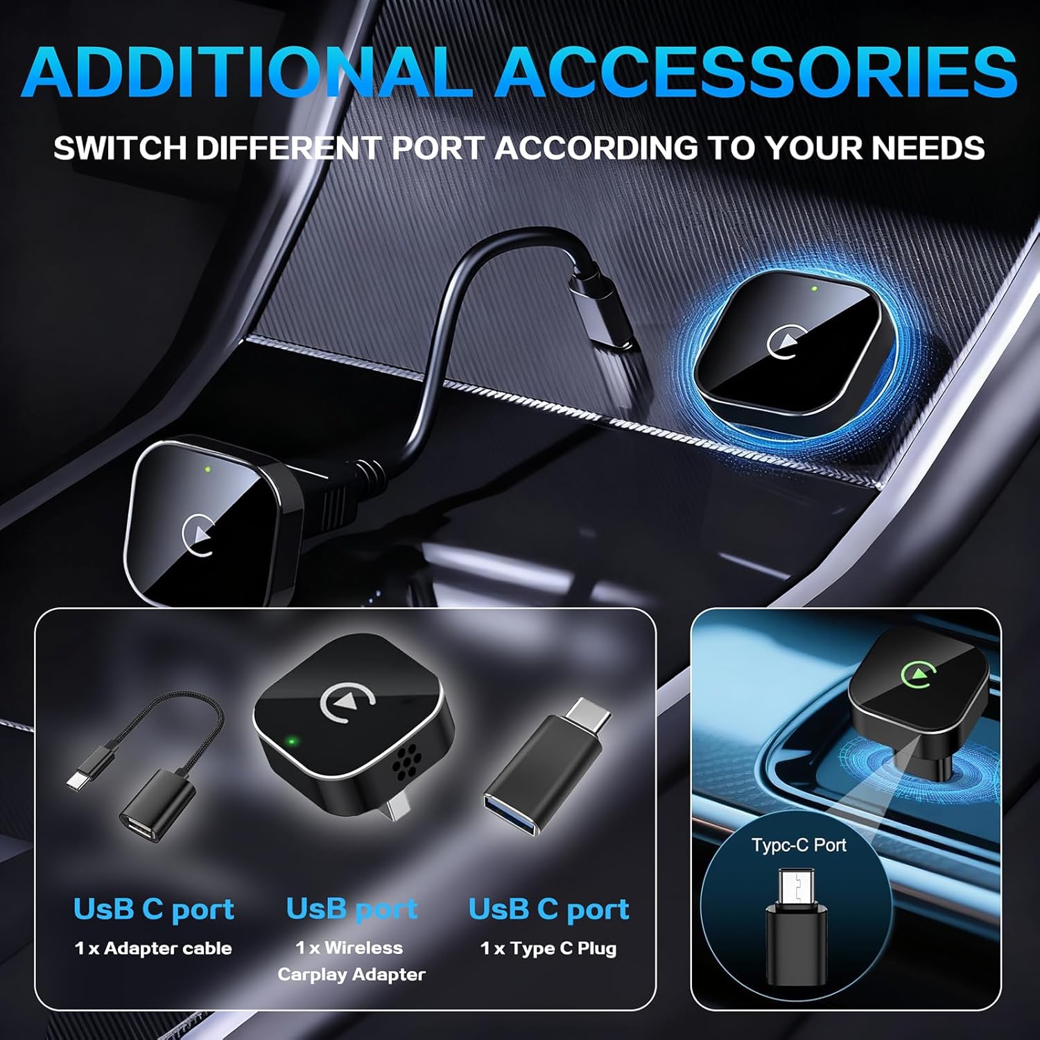 【Effortless Wireless CarPlay Experience】: If your car supports wired CarPlay, our adapter is your best choice for experiencing wireless CarPlay. Enjoy all the apps and controls you use with wired CarPlay, now seamlessly connected through our wireless signal. No need to change your habits—just enjoy a cleaner, cable-free car interior. Our adapter makes the transition to wireless car play effortless and clutter-free.