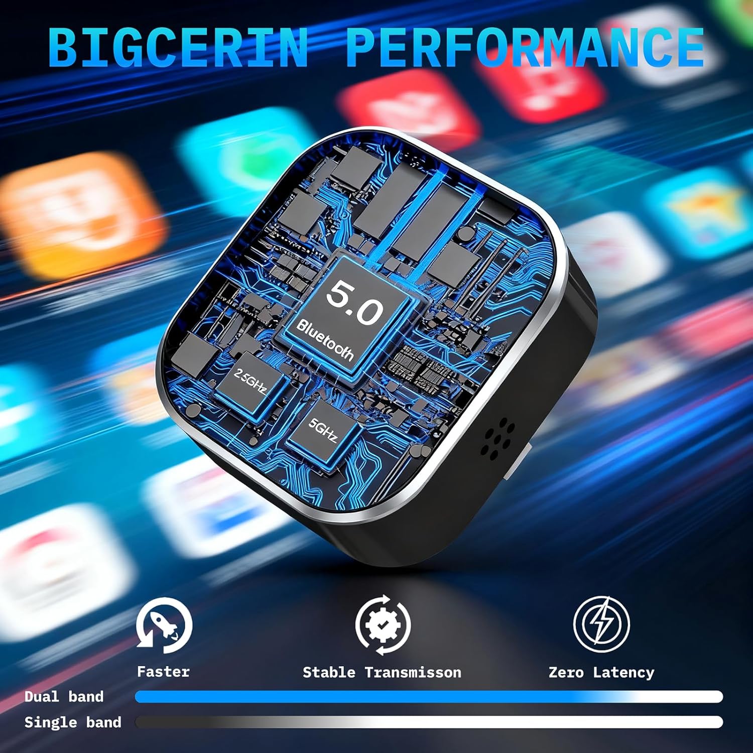 【Lightning-Fast Connectivity】: Our wireless carplay adapter equipped with the latest 5.8 GHz WiFi, Bluetooth 5.0, and a next-gen chip. Complete the first connection in 10s and auto-connect in 3s with zero daily usage delay. Experience transmission speeds 3 times faster than other adapters. Enjoy smoother usage that enhances every safe drive. Navigate, play music, take calls, and handle messages easily through Siri, touchscreen, buttons, or knobs, making focused driving truly achievable.