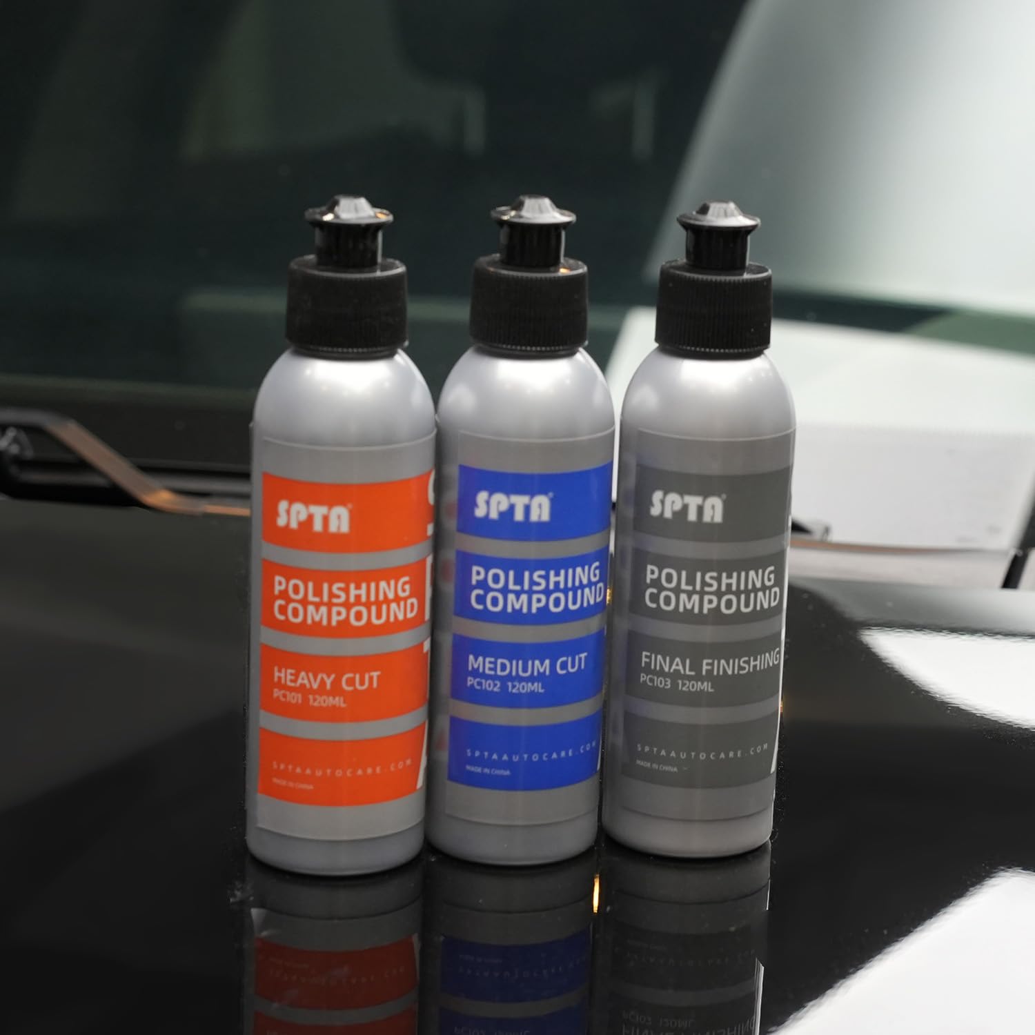 SPTA 120ml Heavy Cut & Medium Cut & Finish Polishing Compound Sets,Car Scratch & Swirl Remover Rubbing Compound, 3-Step System for Scratch Removal, Swirl Elimination & Mirror-Like Finish (4.06 oz)