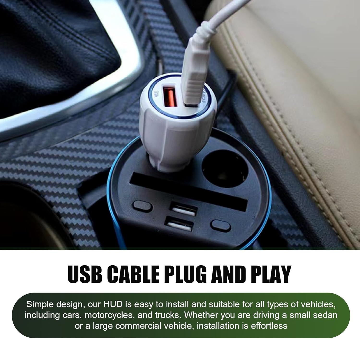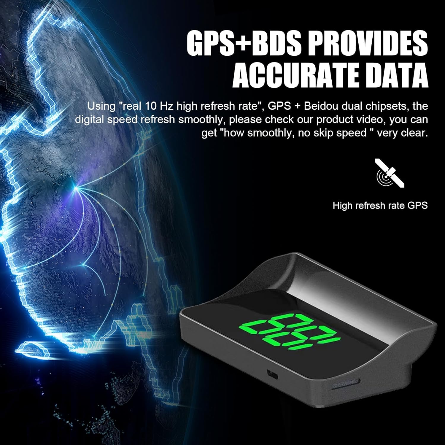 Low-profile HUD sits discreetly on the dashboard without blocking visibility, including an anti-slip pad for stable driving on rough roads.