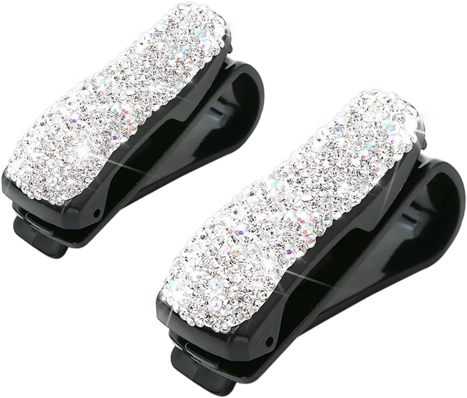 【Bling Glasses Holder for Car Visor】Gorgeous crystals, stylish design, handmade.The glasses holder can clip one pairs of sunglasses and an extra card. It fits all glasses and sunglasses, especially thicker ones. You can also use it to clamp your gas card, charge card, business card, ticket, etc.