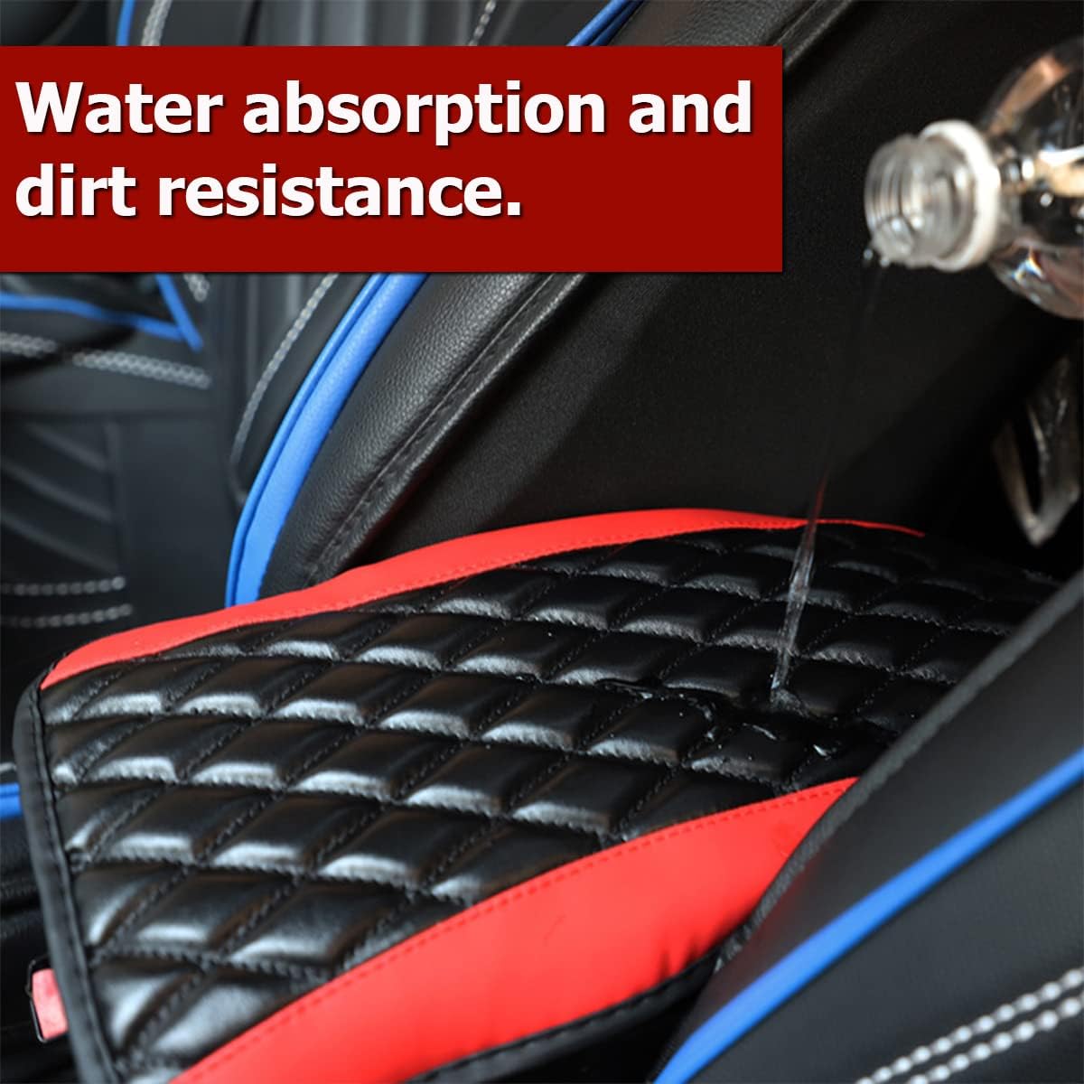 Moly Magnolia Car Center Console Cushion Pad, Universal Leather Waterproof Armrest Seat Box Cover Protector,Comfortable Car Decor Accessories Fit for Most Cars, Vehicles, SUVs (Red)