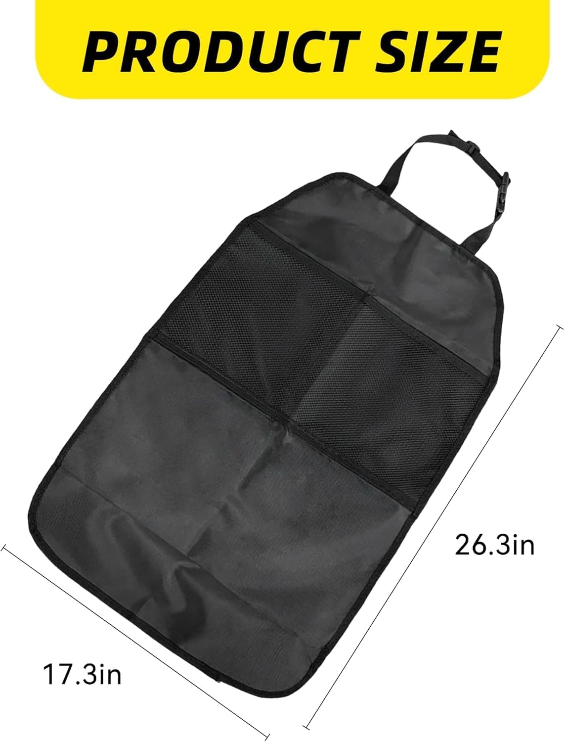 Equipped with two mesh pockets, this kick mat seat back organizer provides additional storage space to your vehicle.
