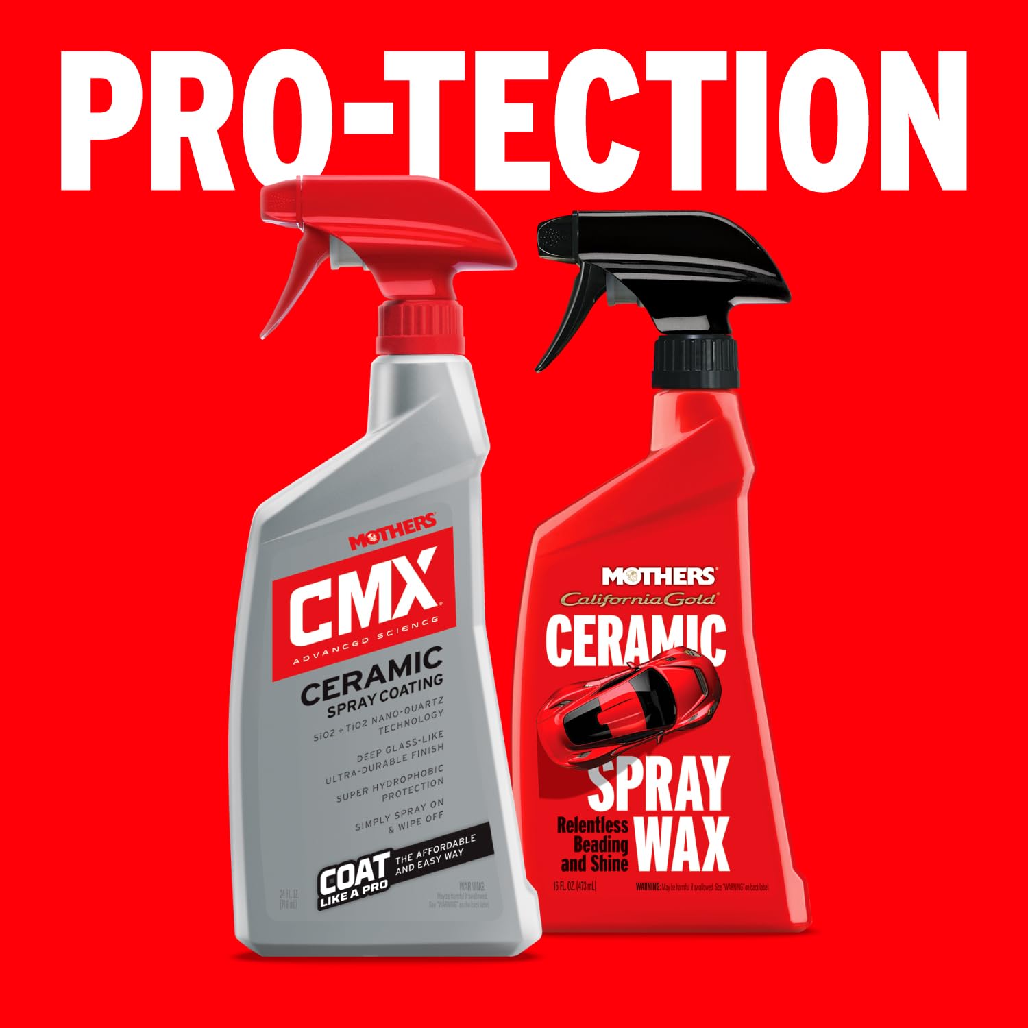 Mothers® CMX® Ceramic Spray Coating is an affordable, user-friendly, professional grade, ultra-durable, super-hydrophobic protection formula. Just spray on and wipe off, with this game-changing SiO2 (Silicon Dioxide) and TiO2 (Titanium Dioxide) blend. This powerhouse combo provides ultra long-term protection from the elements and relentless water beading, without sacrificing true optical clarity, extreme depth and that signature ceramic glass-like liquidy-gloss appearance. Use as a stand-alone product, or as a booster over your existing sealant or ceramic coating. Apply in layers for increased depth, durability and protection. Coating and caring for your vehicle has never been easier. Join the revolution!