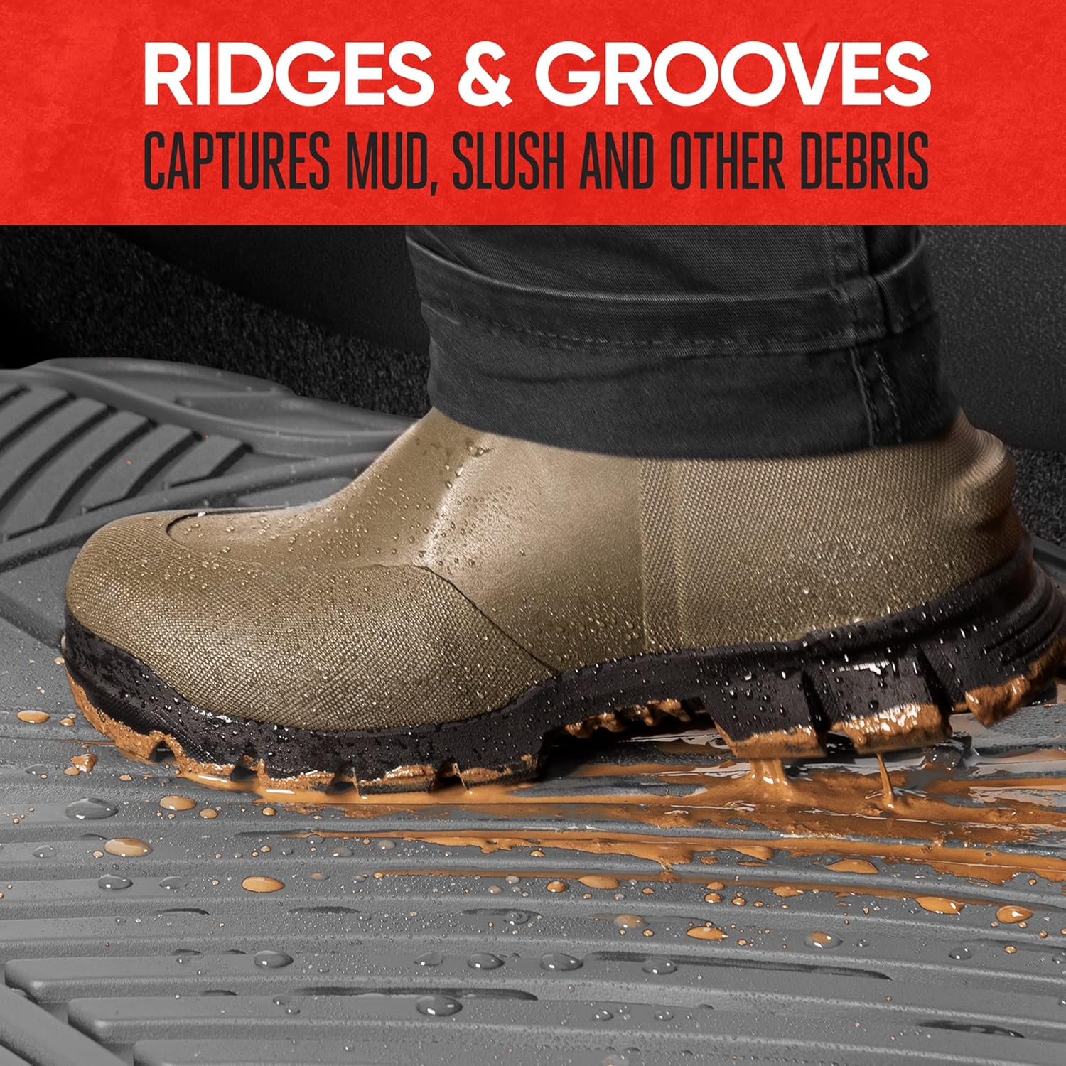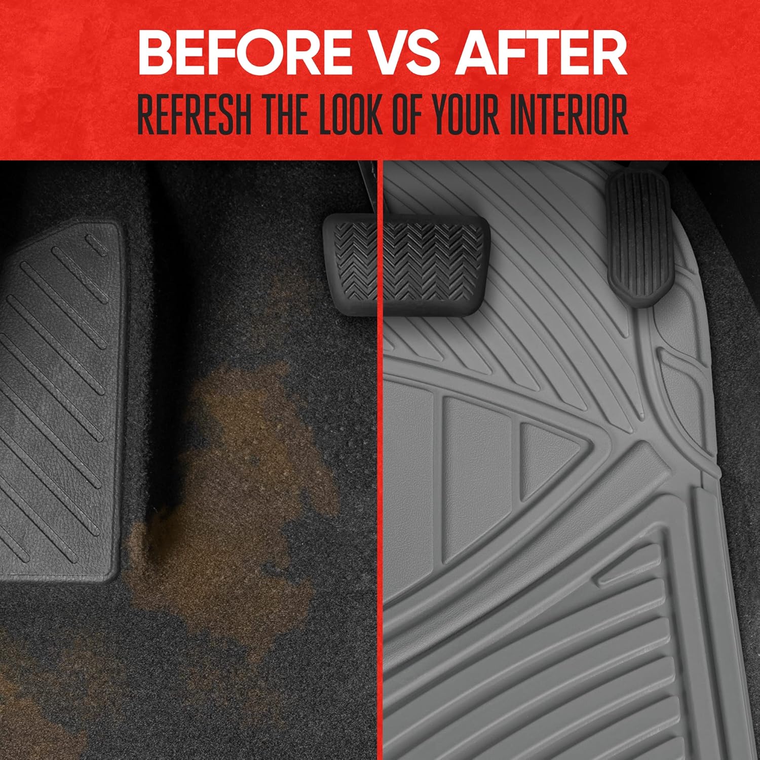 NO-SLIP GRIP: The bottom of the car mat for SUV and cars are equipped with rubberized nibs to ensure they stay securely in place, while the ergonomic grooves on top provide enhanced traction and comfort for your feet, making every drive safer and more enjoyable.