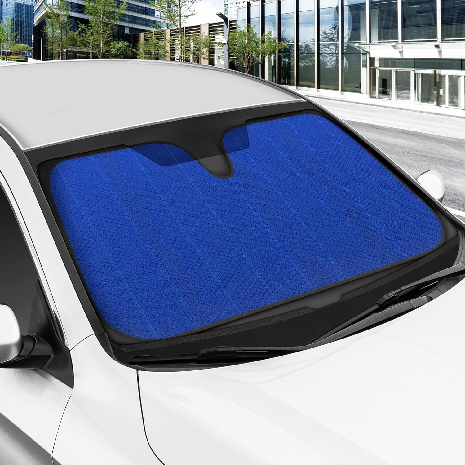 Examples of popular car makes and models that might use this accordian sunshade for car windshield are Toyota Camry, Honda Accord, Nissan Altima, Ford Fusion, Chevrolet Malibu, Hyundai Sonata, Mazda 6, Kia Optima, Subaru Legacy, Volkswagen Passat, Toyota RAV4, Honda CR-V, Ford Escape, Chevrolet Equinox, Nissan Rogue, Hyundai Tucson, Mazda CX-5, Jeep Grand Cherokee, Subaru Forester, Kia Sportage, Ford F-150, 250, and 350, Chevrolet Silverado 1500, Ram 1500, Toyota Tacoma, Nissan Frontier, GMC Sierra 1500, Honda Ridgeline, Ford Ranger, Chevrolet Colorado, Nissan Titan, BMW 3 Series, Mercedes-Benz C-Class, Audi A4, Lexus RX, Tesla Model 3, Genesis G80, Acura MDX, Volvo XC90, Porsche Cayenne, Land Rover Range Rover, Toyota Corolla, Honda Civic, Mazda 3, Hyundai Elantra, Kia Forte, Chevrolet Spark, Nissan, Tesla, and more!