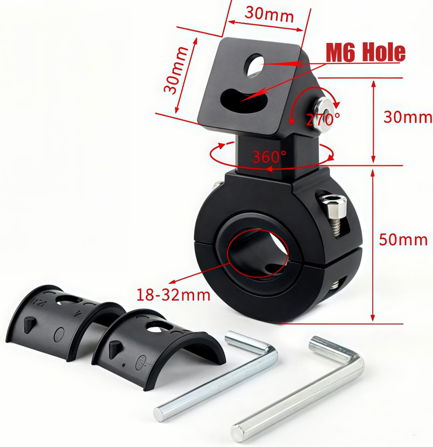 Universal Tube Clamp Mounting Bracket: Patented clamp system fits round tubes diameter 18-32mm (0.7″-1.26″). No drilling required – installs in minutes.