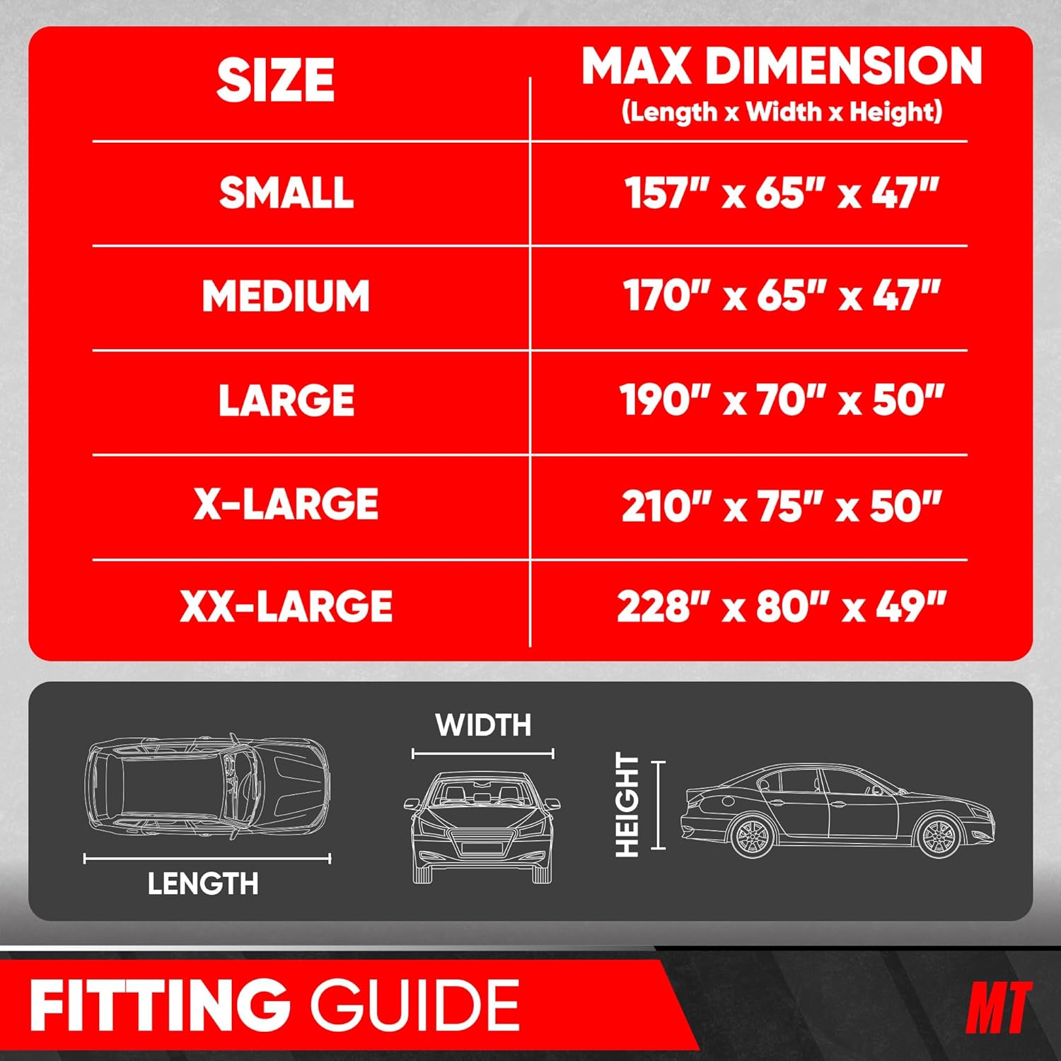 FITMENT – Vehicle cover: 190″ (L) x 70″ (W) x 50″ (H) | Perfect fit for Ford Mustang GT, EcoBoost, Fastback, Dark Horse, Shelby, Convertible. Please measure your vehicle prior to purchase to ensure fitment.