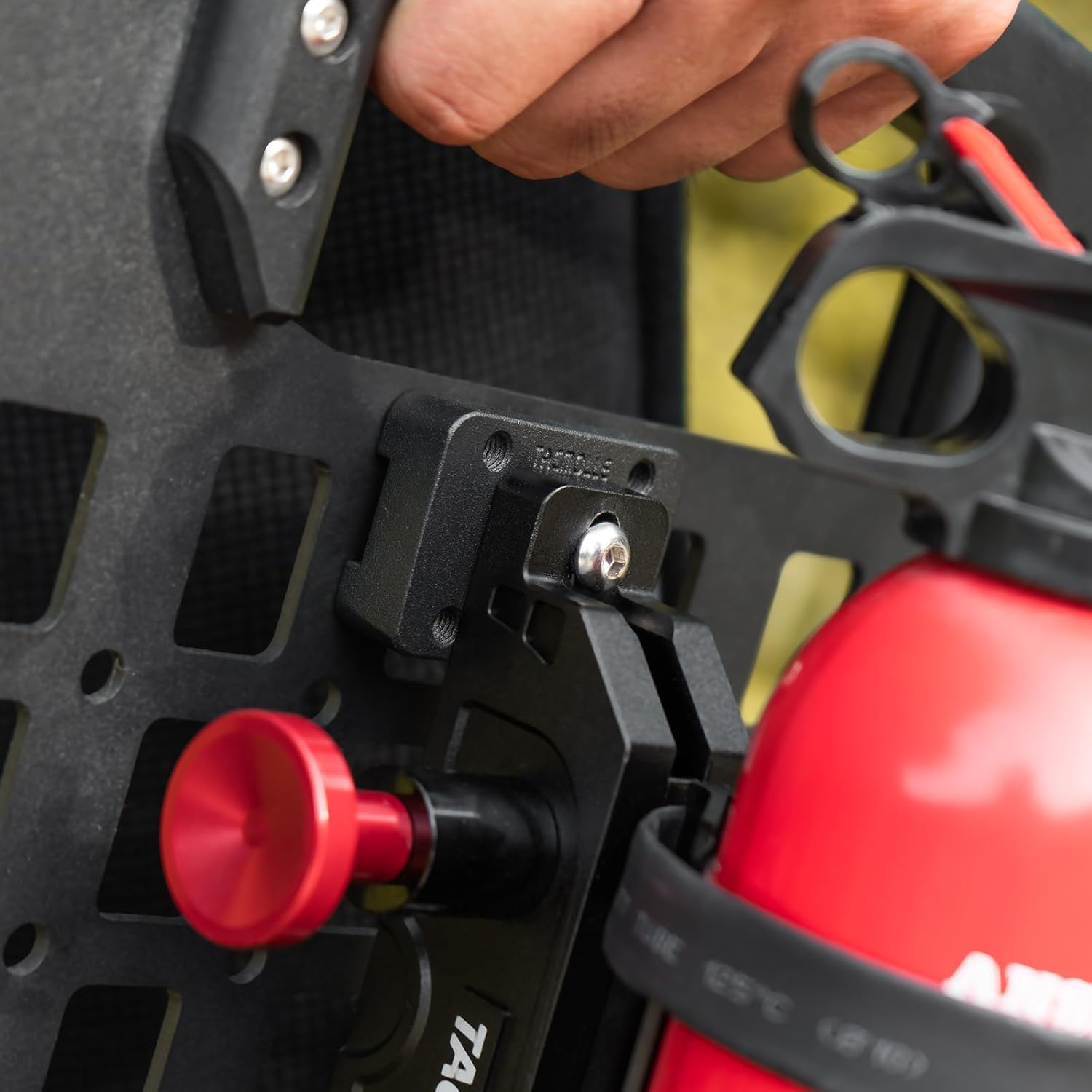 Designed for 1-inch tactical slots, this MOLLE mounting base supports various brackets, ensuring reliable load-bearing for gear like fire extinguisher mounts, gas can mounts, gun racks, and more.