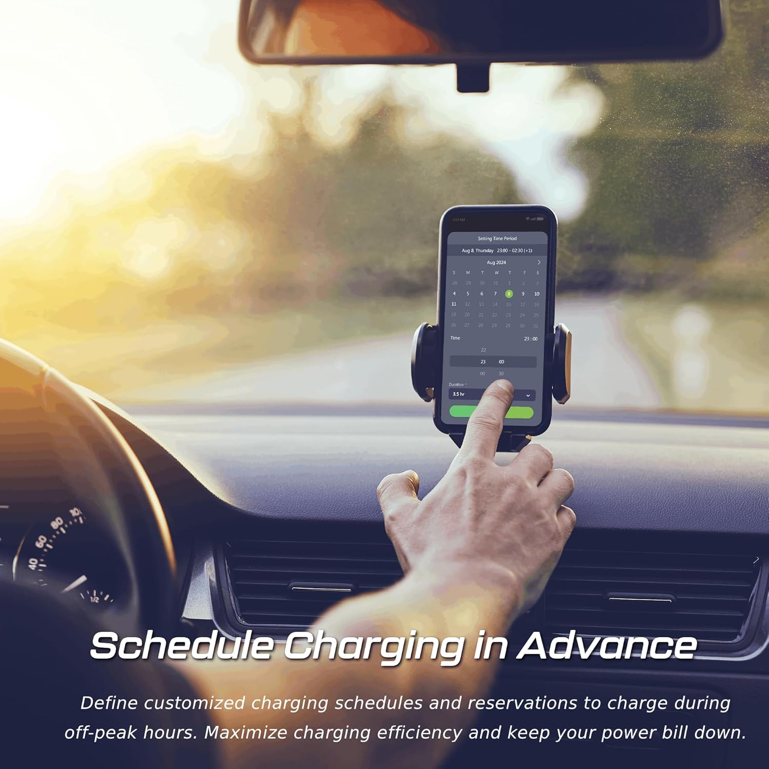 24.6 ft charging cable—easy to charge no matter how you park; IP55-rated for water and dust resistance, suitable for both indoor and outdoor use