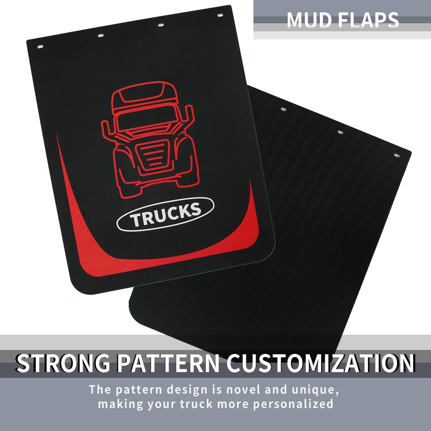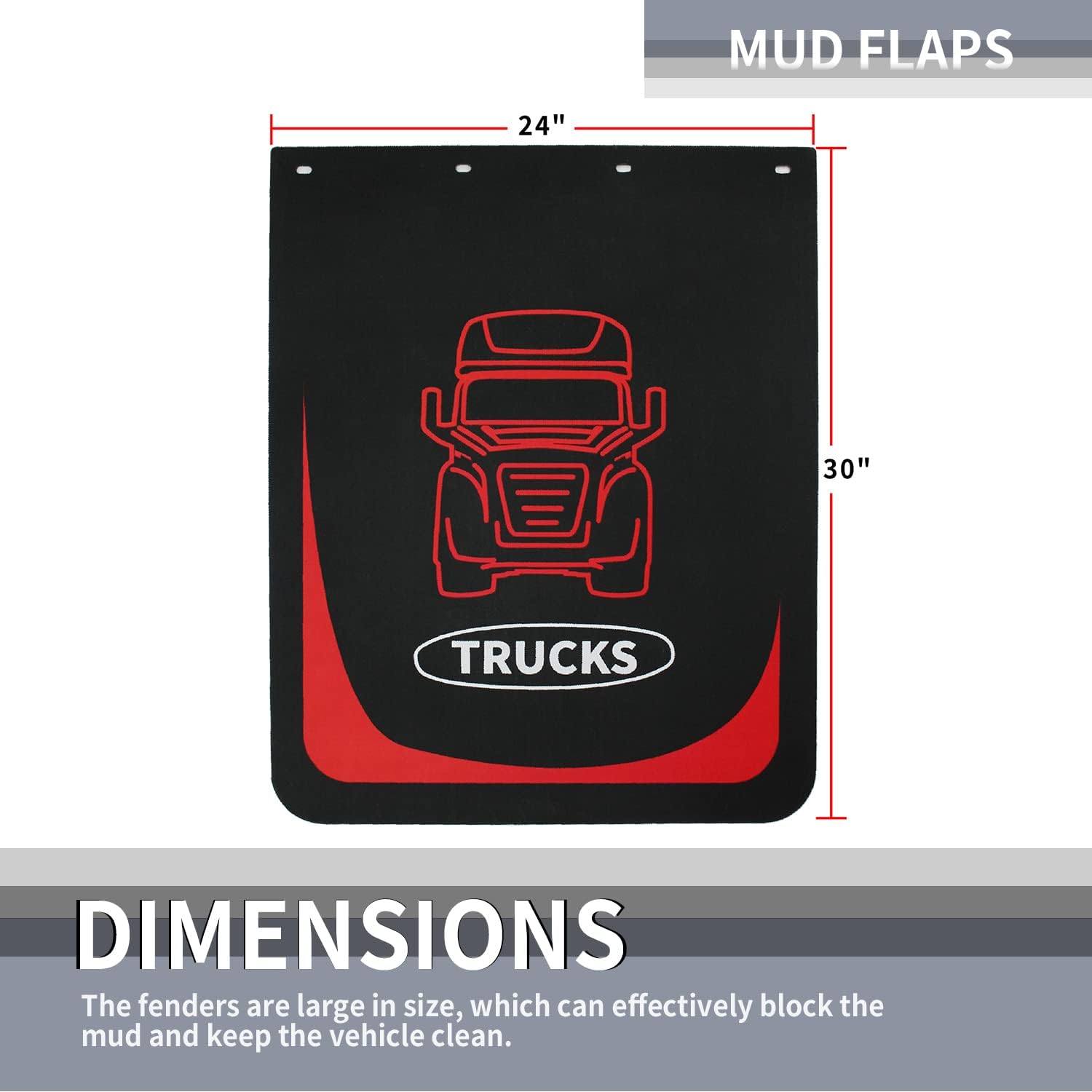 Custom Mud flpas patterns can make your truck stand out from the crowd.Mud flpas for semi truck are made of durable, high-quality PE +TPE material that maintains both toughness and hardness.Semi truck Mud flpas is not easy to deform or crack, and can be used normally in extreme weather; Protect your vehicle from harmful road debris.Mud flpas is equipped with a mounting hole, which is very convenient to install and disassemble.There’s in the box 2 Pcs Mud flpas for semi truck 24”x30”.