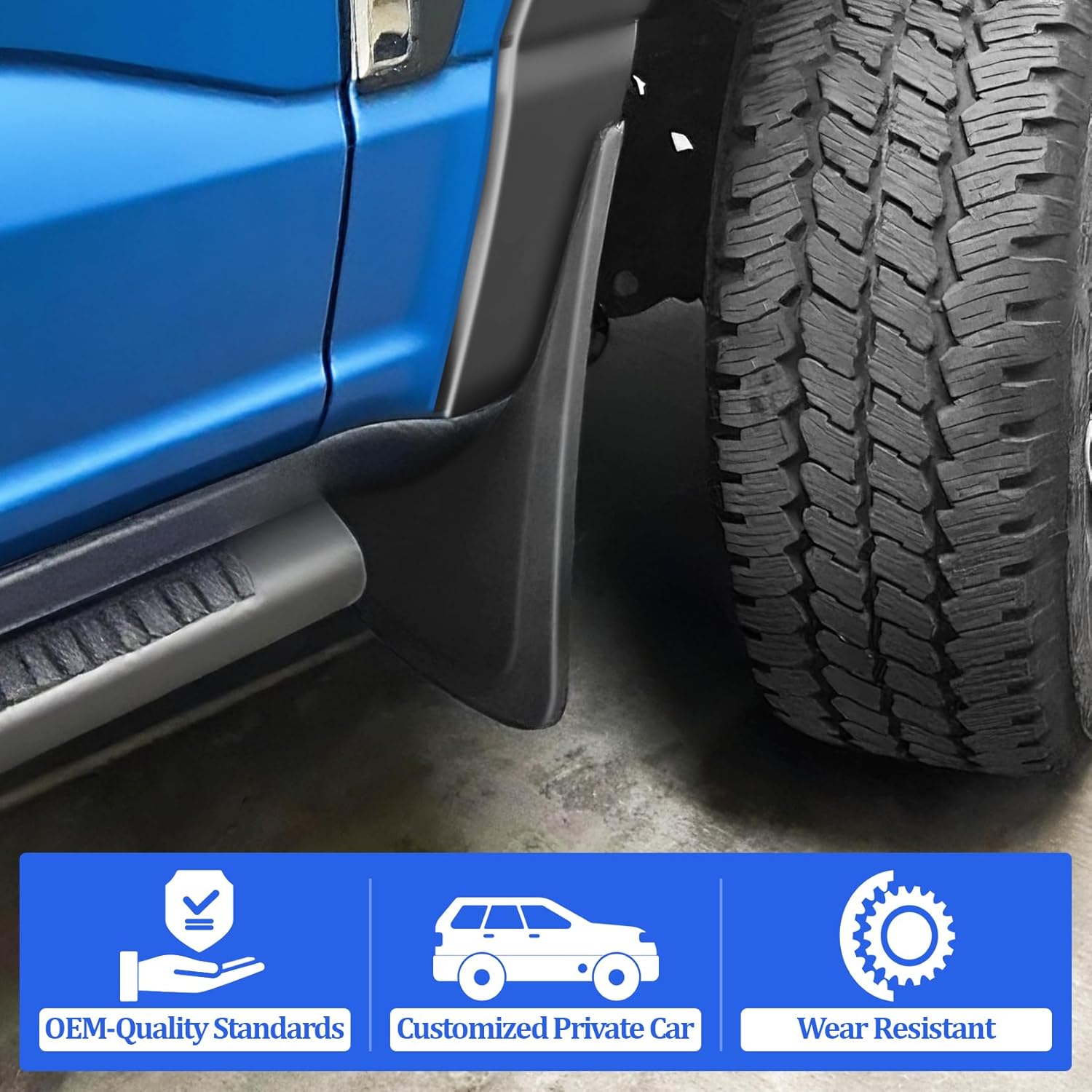 【Premium Durability in All Conditions】Made from high-quality ABS thermoplastic with enhanced thickness, these rubber mud flaps for trucks provide exceptional impact resistance and flexibility, resisting cracking, deformation, and corrosion, making them ideal Ford F250 accessories and Ford F350 accessories.