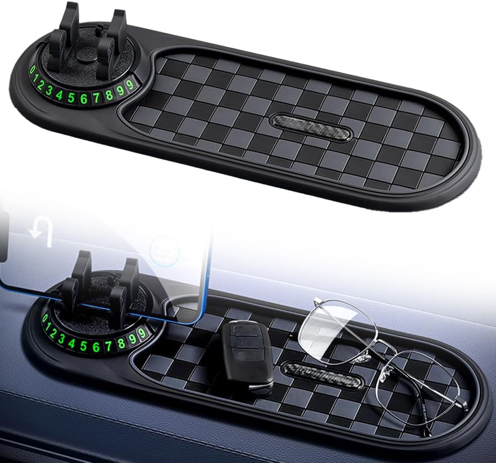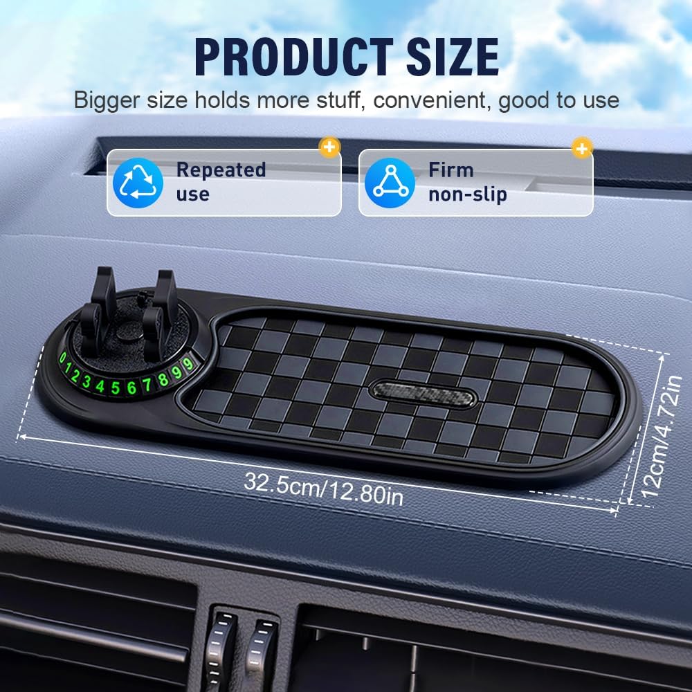 🌀【360° Rotating Phone Holder】Equipped with a dashboard phone holder that rotates 360 degrees, the non-slip pad for car allows you to easily adjust your phone’s angle for navigation or calls, keeping your view unobstructed and improving driving comfort and safety.