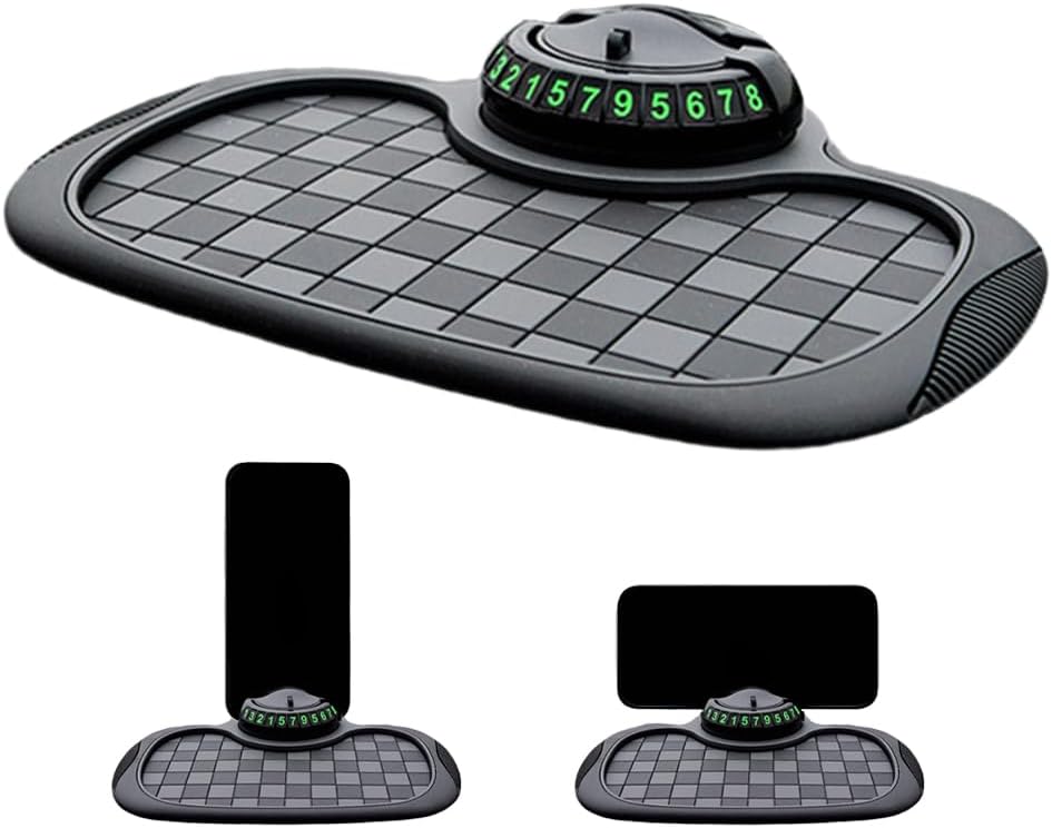8 reviews for Multifunction Car Anti Slip Mat, 360° Rotatable Phone Holder Dashboard Pad with Temporary Parking Number, Anti Skid Organizer for Phone Sunglasses Keys (Black-Gray Checkered Pattern)