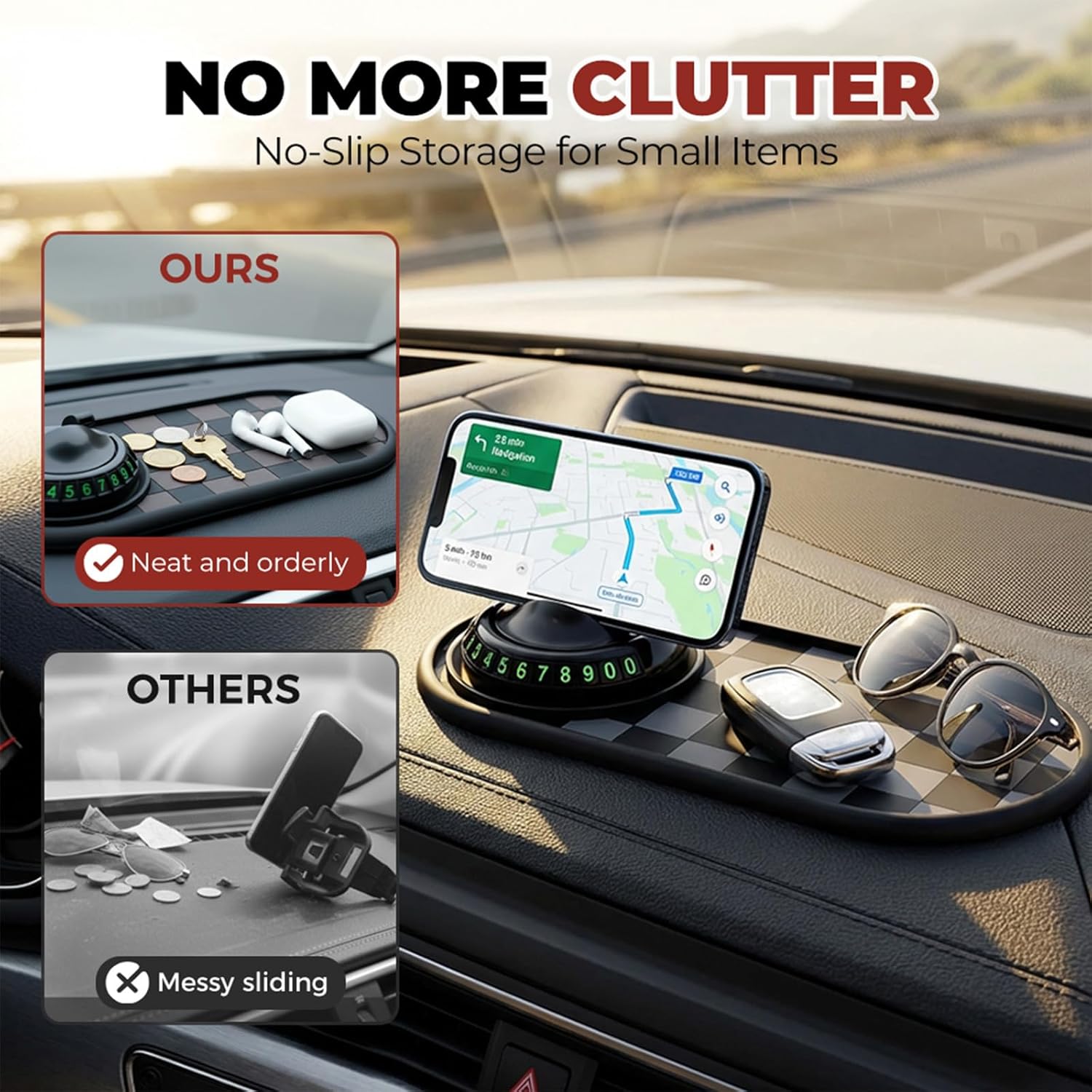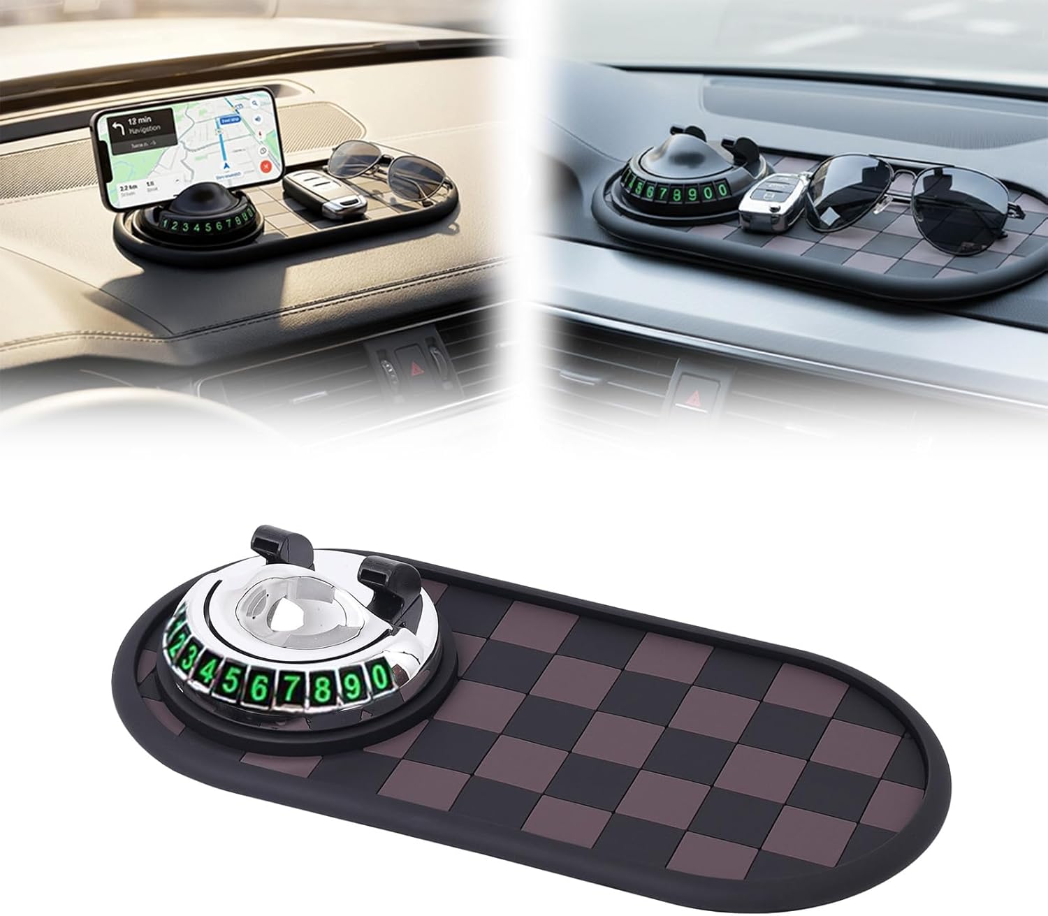 “Multifunctional Car Anti-Slip Mat with 360° Rotating Phone Holder & Temporary Parking Number, Anti Slip Mat for Car Dashboard, Multi Functional Cell Phone Holder for Sunglasses Keys Small Items