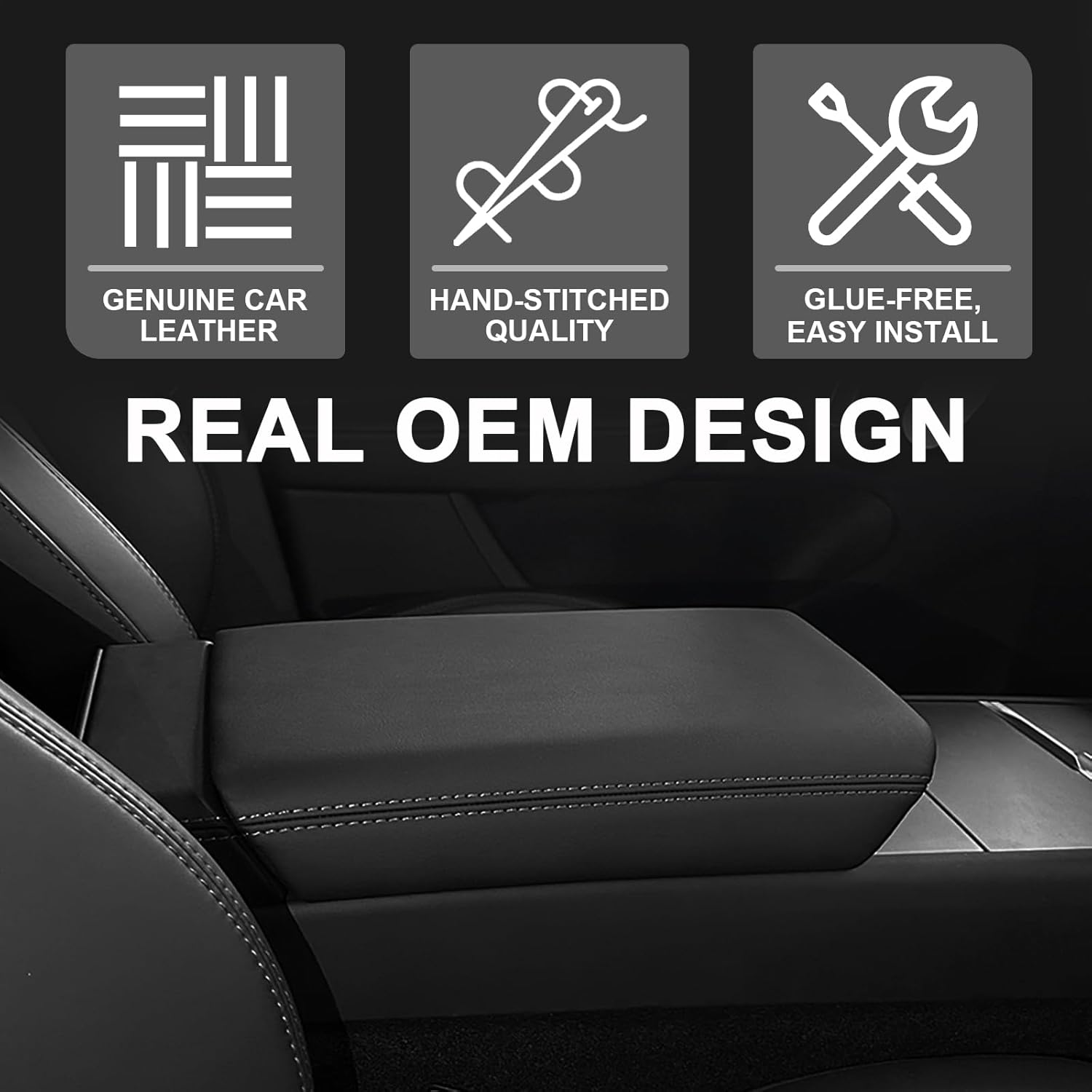 13 reviews for Muslogy Center Console Armrest Cover Fit for Tesla Model Y Juniper 2026+ / Model 3 Highland 2024+ Accessories, Comfort Armrest Pad Console Lid Cushion Vegan Leather Snap-On Black (Hard Cover)