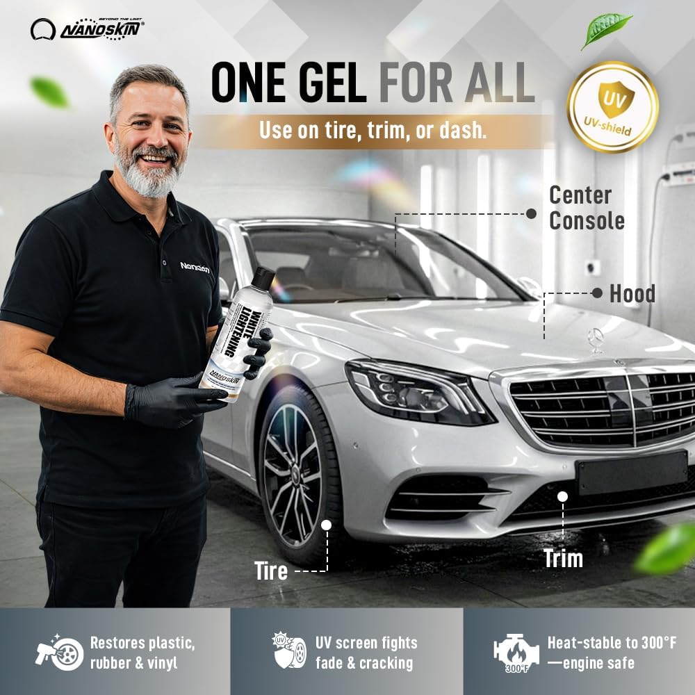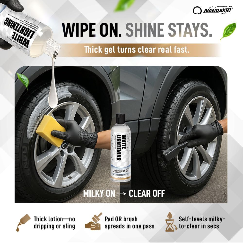Nanoskin WHITE LIGHTENING Premium Dressing 16 Oz. – Universal Thick Wipe-On Dressing for Car Detailing | Works on Tire, Vinyl, Rubber, Plastic & Trim | Safe for Cars, Trucks, Motorcycles, RVs & More