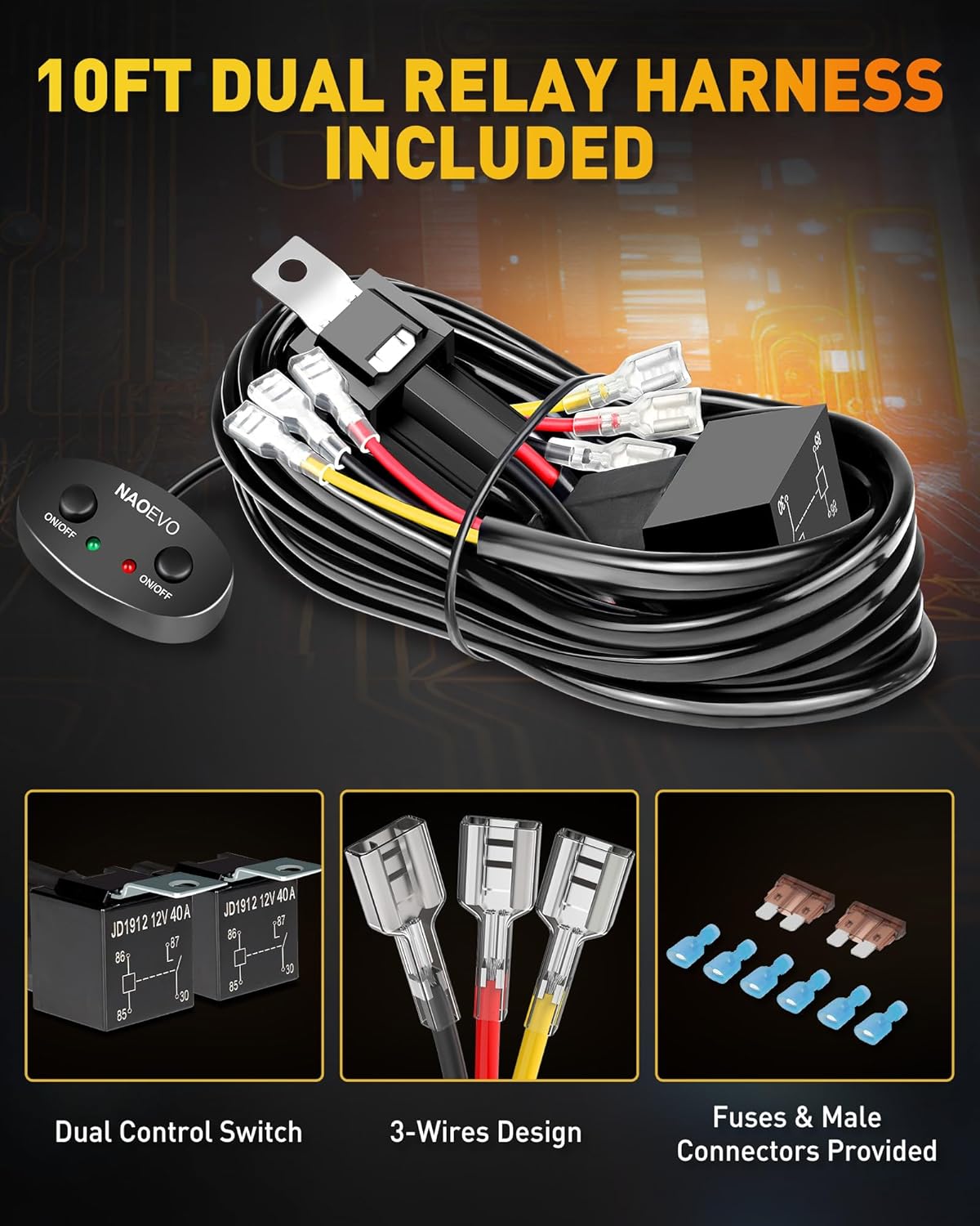 [Superior Wiring Harness Supplied] – Our 7inch led light bar is very easy to install and connect, please check our pictures for specific installation and connection steps. In addition, we offer a 10ft 2 leads 3-wire design wiring harness which come with 40A power relay and inline blade fuses. Providing you multiple protection and ease of use.