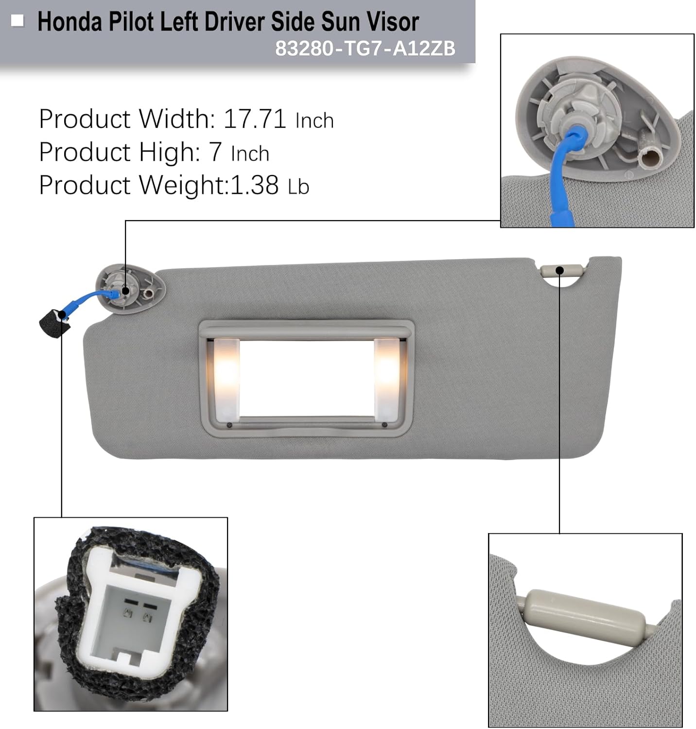 Compatible with:Sun visor For Honda Pilot 2016 2017 2018 2019 2020 2021 2022. Honda Ridgeline 2018 2019 2020.Please check if your vehicle year is applicable before purchasing to confirm that it meets your requirements.