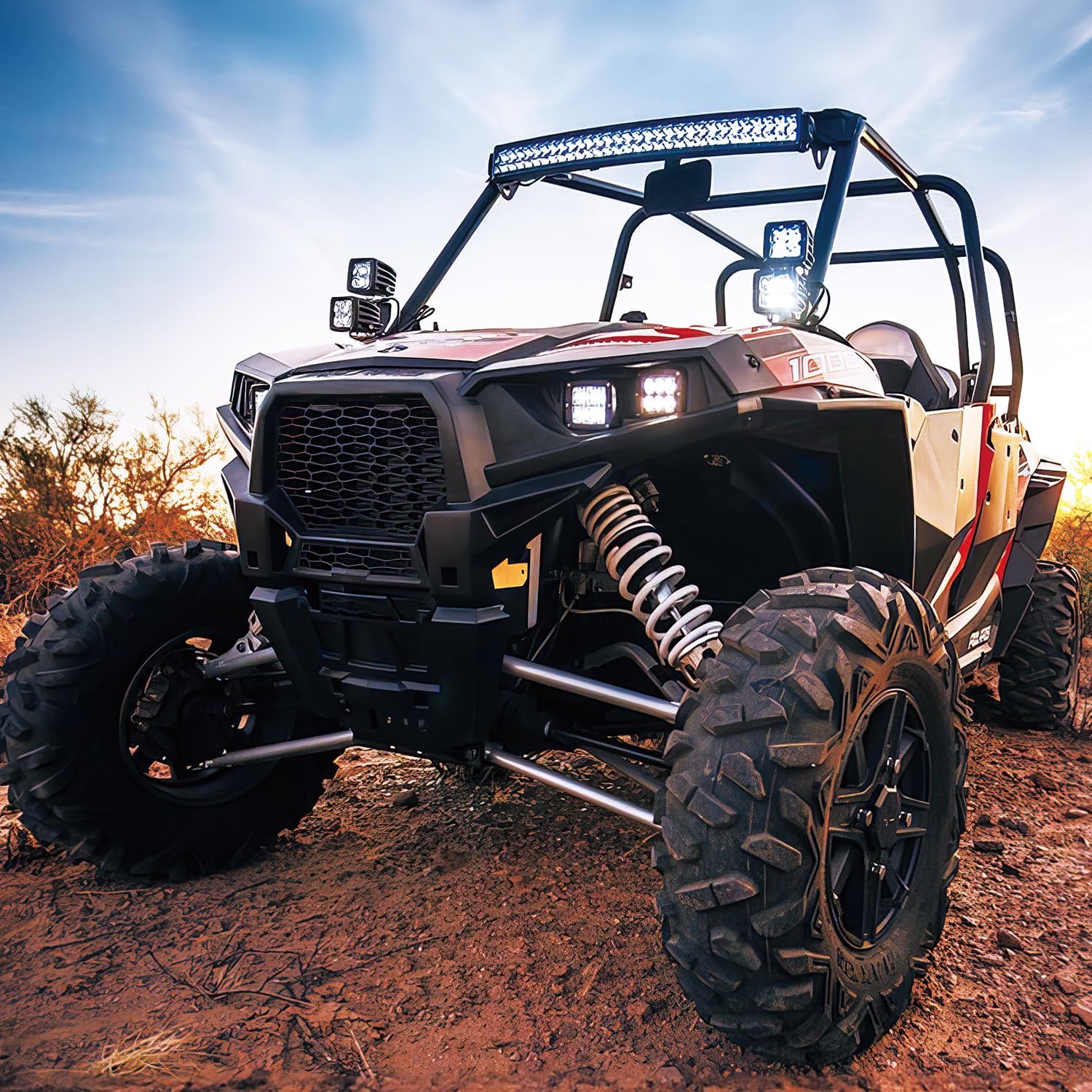 Upgraded Combo Beam Type: Combining top and bottom 30°spot light and middle 170° flood light, the lard cubes can greatly improve your visibility at broader and further distance, no more afraid of dark spot