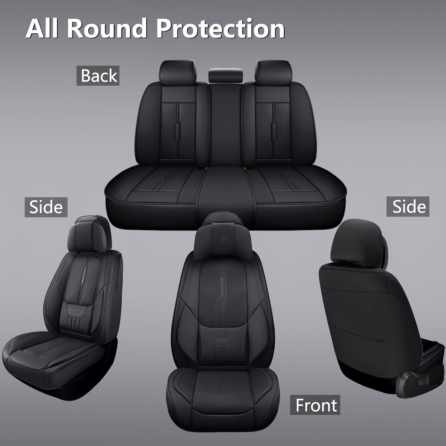 NS YOLO Universal Fit Full Coverage Leather Car Seat Covers for Cars,SUVs and Pick-up Trucks, Car Seat Protector,Automotive Seat Covers Full Set,Car Seat Cushion,Black Seat Cover for 5 Seats