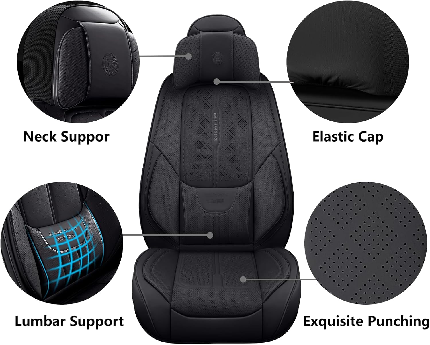 【Universal Fit】The car seat cushion fits for Ford,Chevrolet,Buick,Volkswagen,Toyota,Honda,Nissan,Mazda,Mitsubishi,Hyundai,Kia, Jeep,etc… Meanwhile the leather car seat cover full set has a wonderful envelopment with the car seats which can maximize the protection to the seats. We leak out the air bags, so once an accident occurs, the air bags still work.And the leather is breathable so that the cover will not affect the function of heating or cooling in your car.