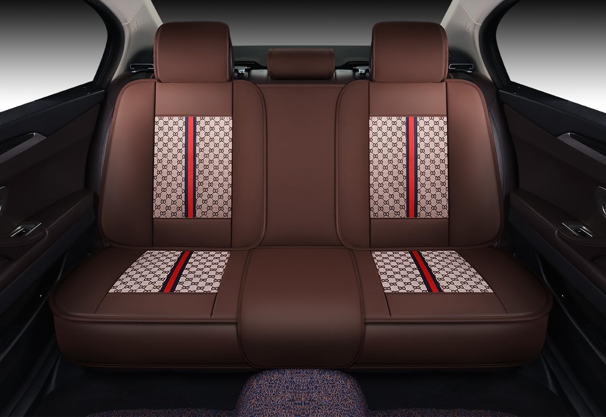 OASIS AUTO Car Seat Covers Full Set, Luxury Stylish Waterproof Faux Leather, Universal Fit for SUV, Sedan, Pick-up Truck, Automotive Interior Protectors (OS-007 Brown)