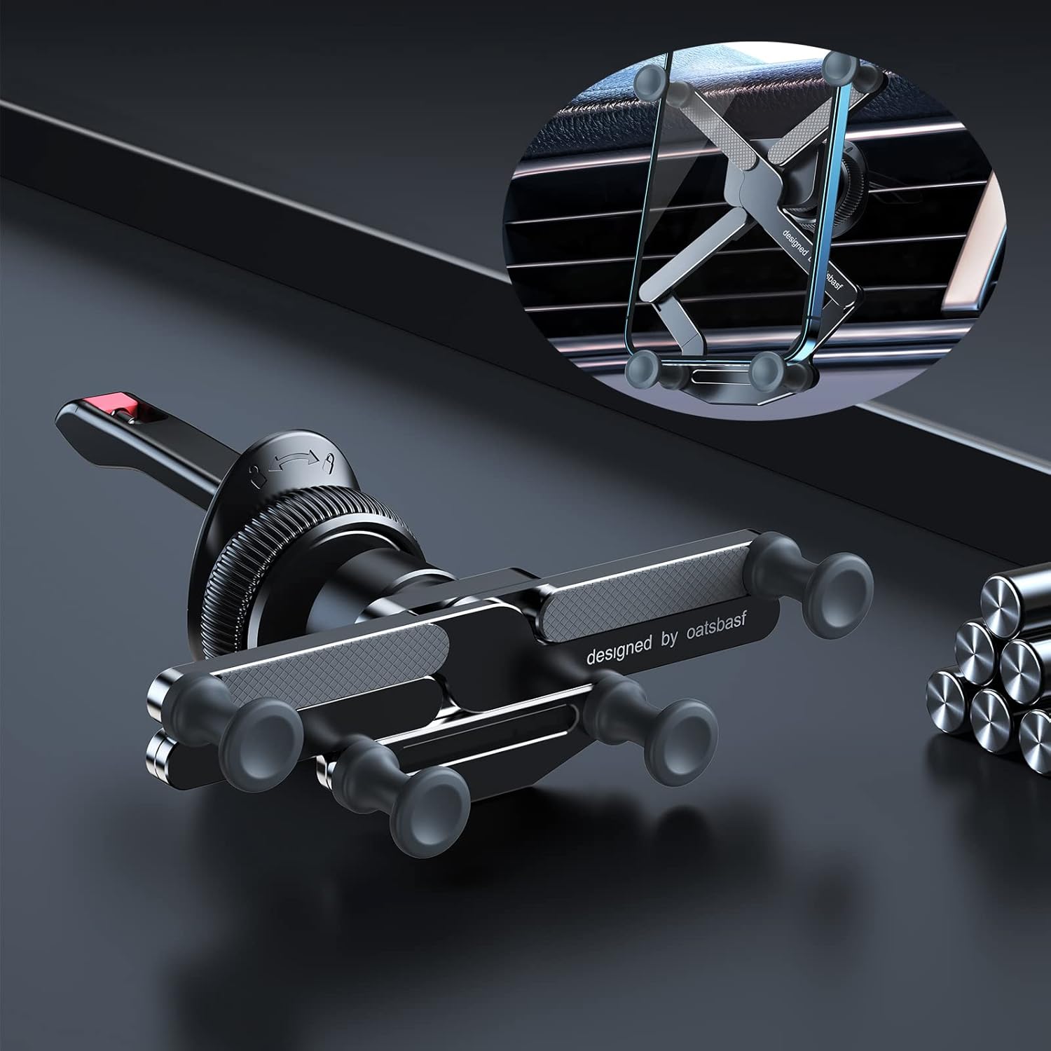 Slim, Full-Metal Car Vent Phone Mount: Minimalist design (no metal plates, no signal interference), boosts heat dissipation. 4 arms won’t block buttons; vacuum-plated metal is scratch-resistant, anti-aging. Lengthened feet hold thick/heavy phones.