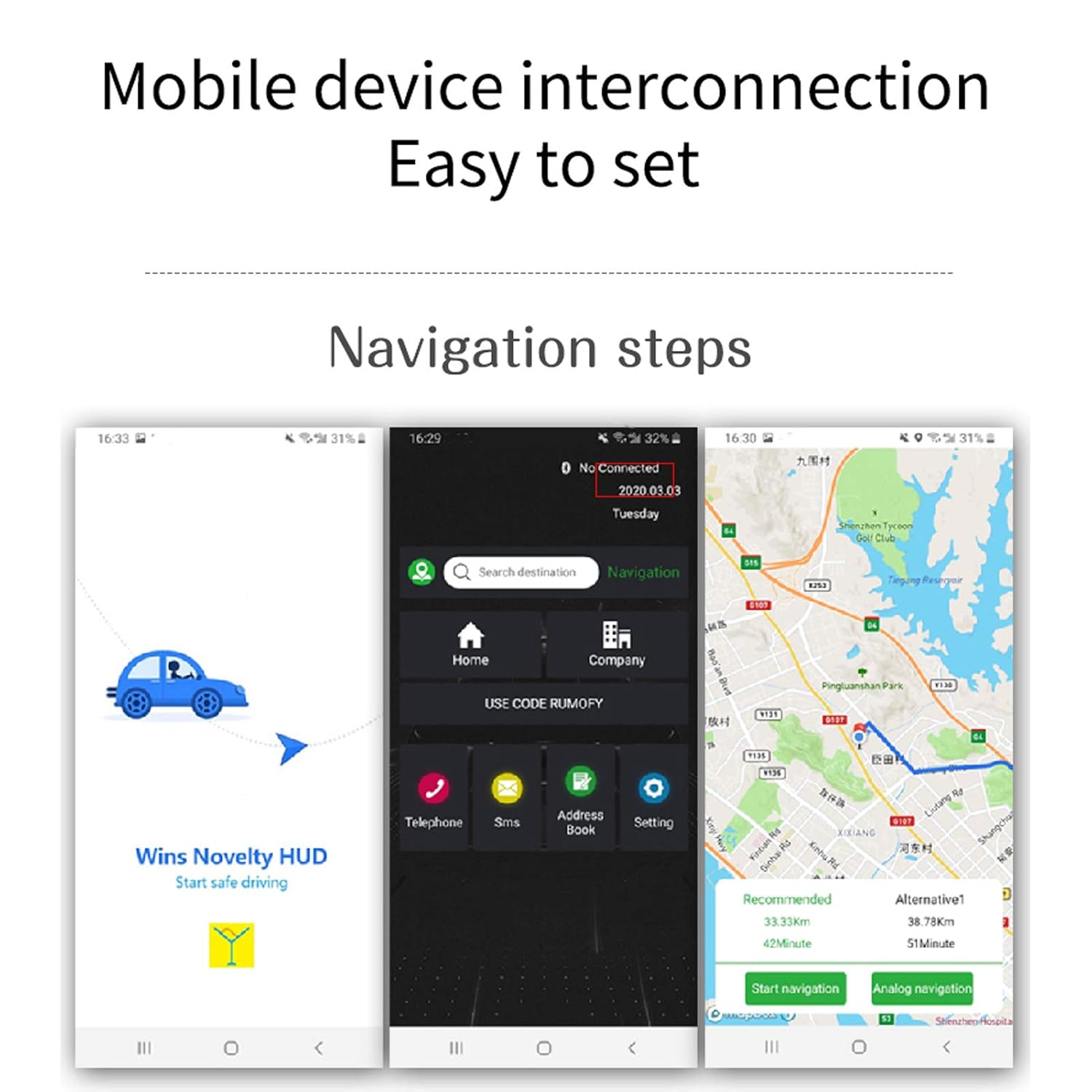 3. Navigation Method: Need to download WiiYii APP software, HUD and smart phone for Bluetooth connection, and display navigation information synchronously through APP