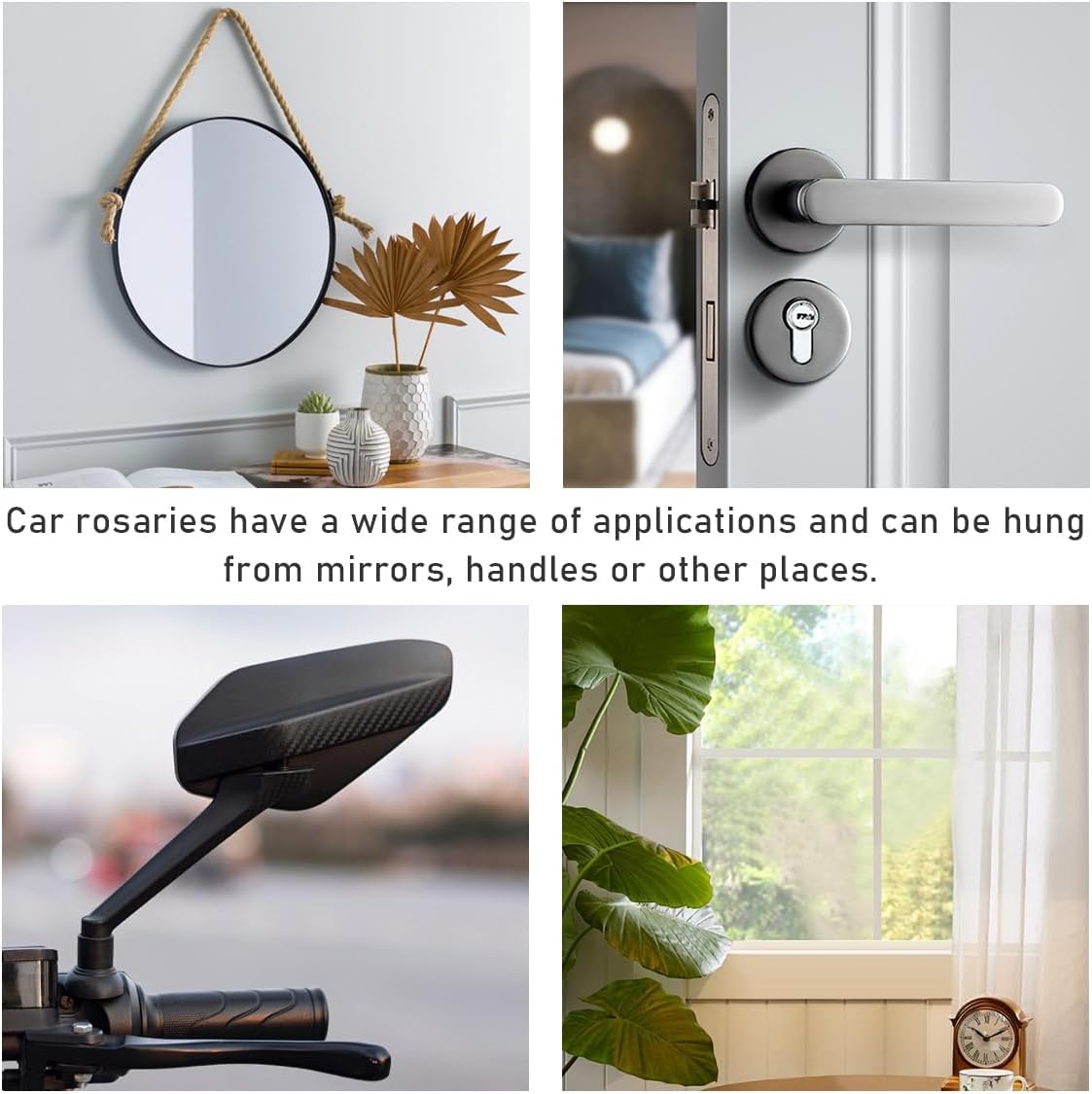 【Beautiful Blessings】: This rosary pendant symbolizes the Catholic’s spiritual trust and veneration of the Virgin Mary. Hanging on the rearview mirror of the car, it is like a kind of flowing prayers and blessings, always accompanying the car owner, bringing inner peace and comfort for safe traveling.
