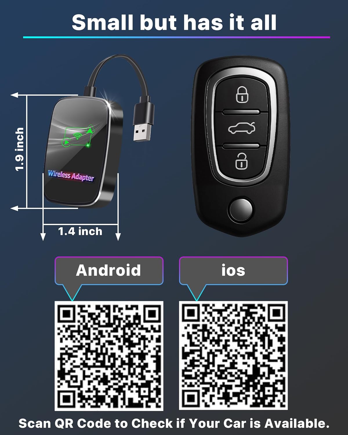 This Wireless CarPlay & Android Auto Adapter is a game-changer for anyone with a factory wired system. Setup is truly plug-and-play, and it connects automatically within seconds every time I get in the car.The 5.8GHz WiFi provides a stable, fast connection with no noticeable lag, and both CarPlay and Android Auto work smoothly. It feels like a seamless upgrade from a wired system, without any messy cables.Overall, it’s reliable, easy to use, and makes daily driving much more convenient—highly recommend for anyone wanting wireless functionality in their car.