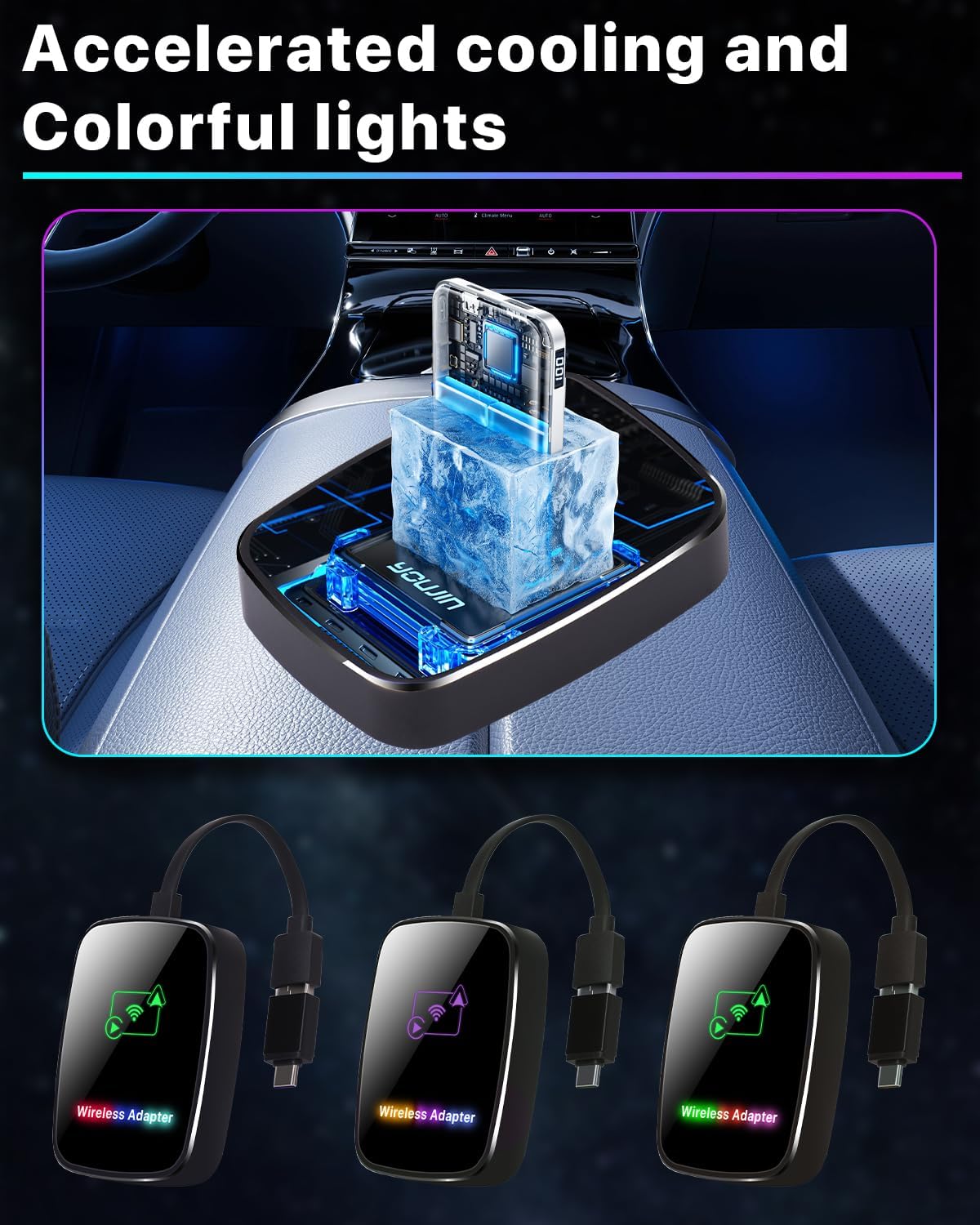 【Instant Auto-Connect & Faster Wireless Speed】Built with 2026 upgraded 5.8GHz Wi-Fi + Bluetooth 5.4, delivering faster data transfer, lower interference, and more responsive screen performance than 2.4GHz adapters. The smart auto-connect system recognizes your phone instantly—just start the engine and it reconnects in seconds, with no plugging in, no waiting, and no manual steps. Save time on every drive and have navigation, music, and calls ready before you even shift into gear. Supports OTA updates to continuously improve compatibility, stability, and system security over time.