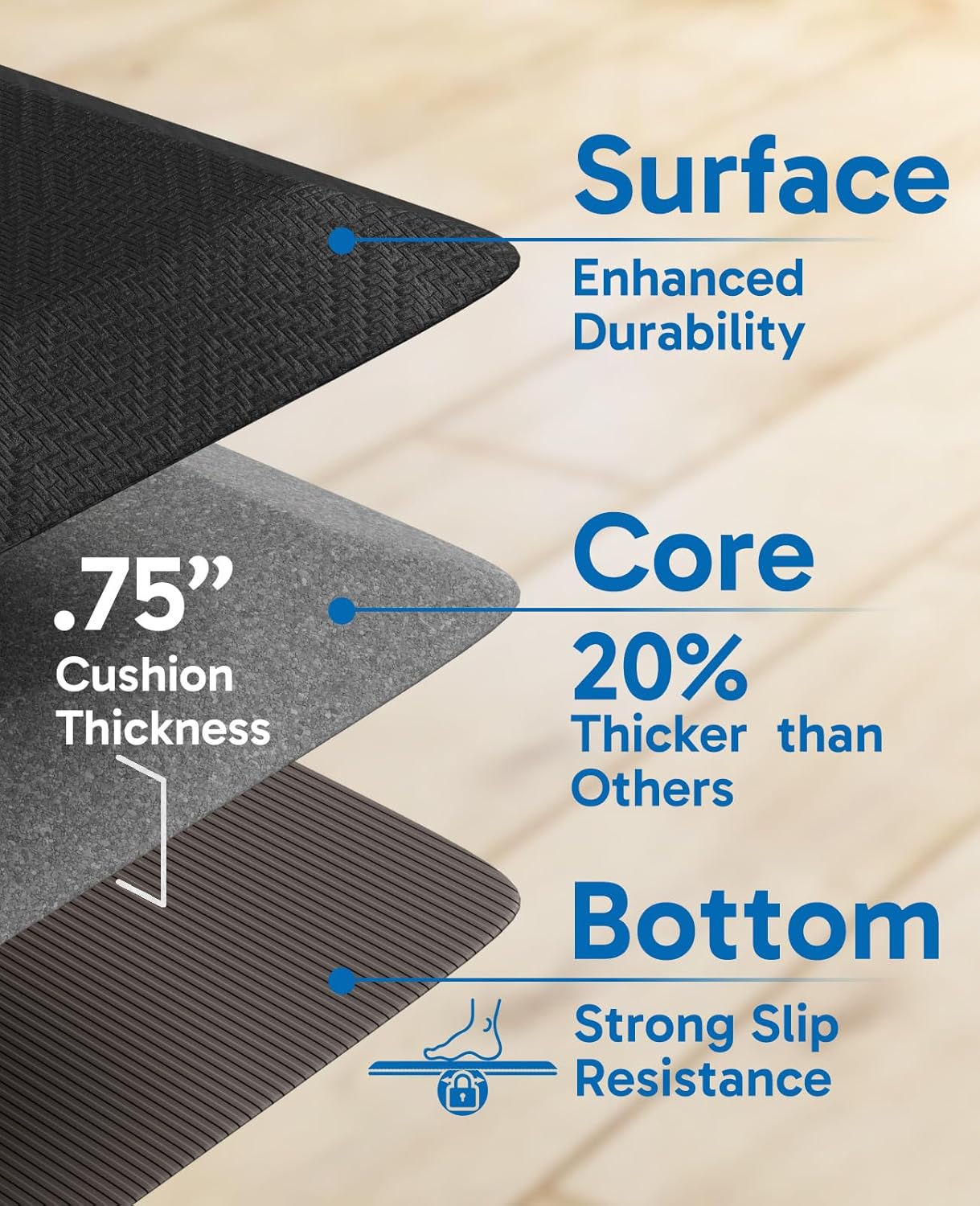 Note: For optimal anti-slip performance, use on a clean, dry floor. While our non-slip bottom outperforms competitors on dry surfaces, it may be less effective on wet floors.