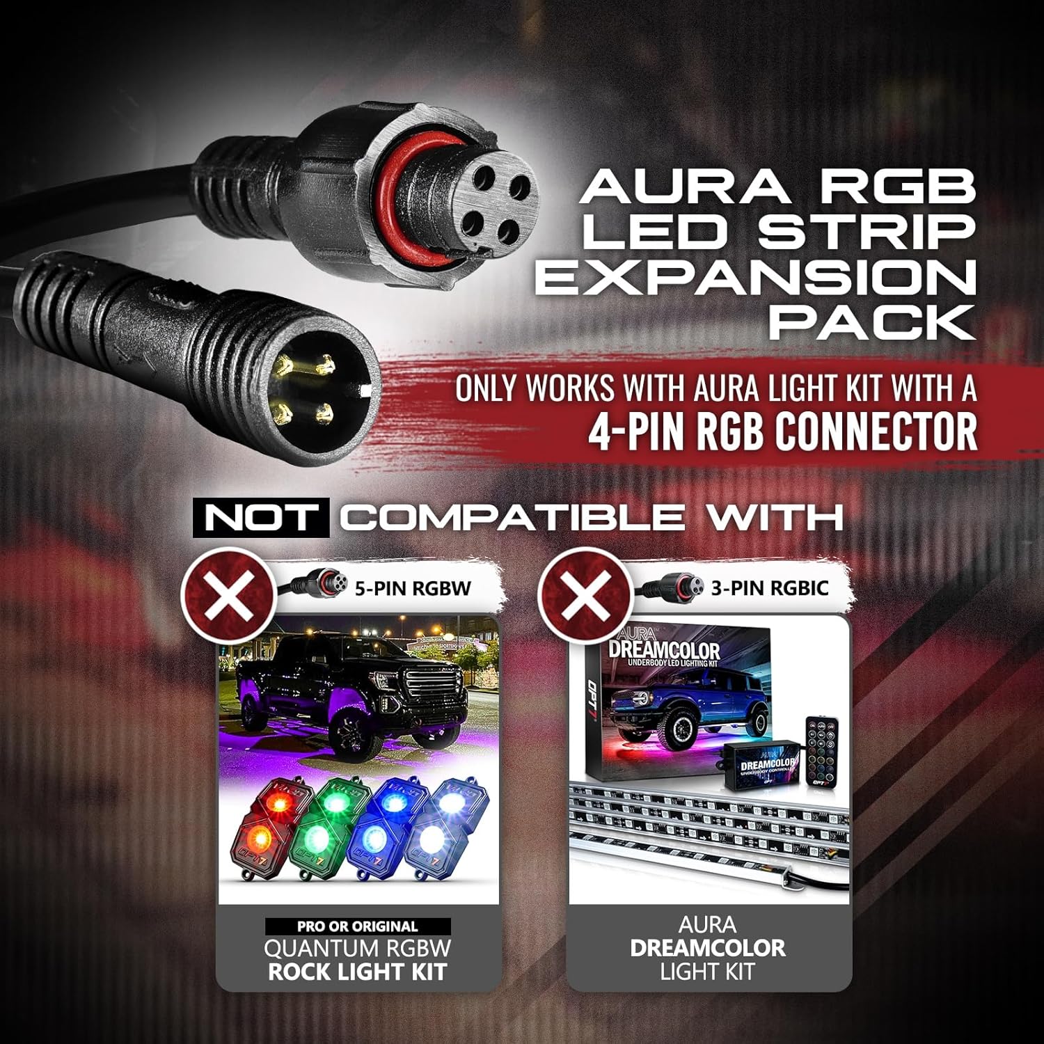 Ideal Fit for Aura 4-Pin Kits: Designed for OPT7 Aura Kits with 4-pin connectors only. Backed by a 30-day warranty and US-based customer support, OPT7 is ready to assist with all your questions or concerns. *NOT COMPATIBLE WITH Aura Pro Car Interior Lights B07NSM3TZW, B07NSMVT4S, B07NSN691B, and B07P7JQ674.