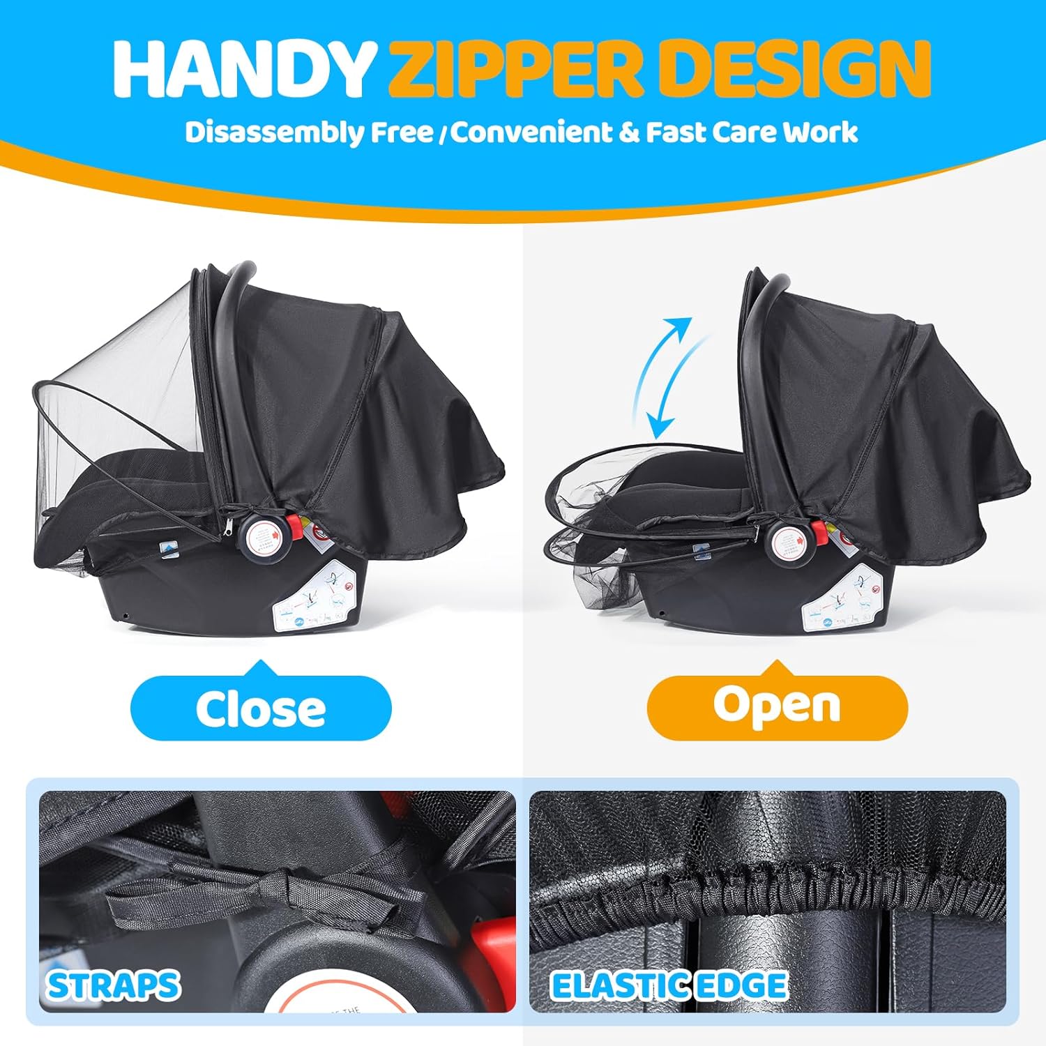DOUBLE PROTECTION: Orzbow Infant Car Seat Mosquito Net can not only protect against mosquito and bee bites with fine mesh but provide instant privacy and sun protection with stretchy UPF50+ shade fabric when outdoors, blocking 99% of UV rays